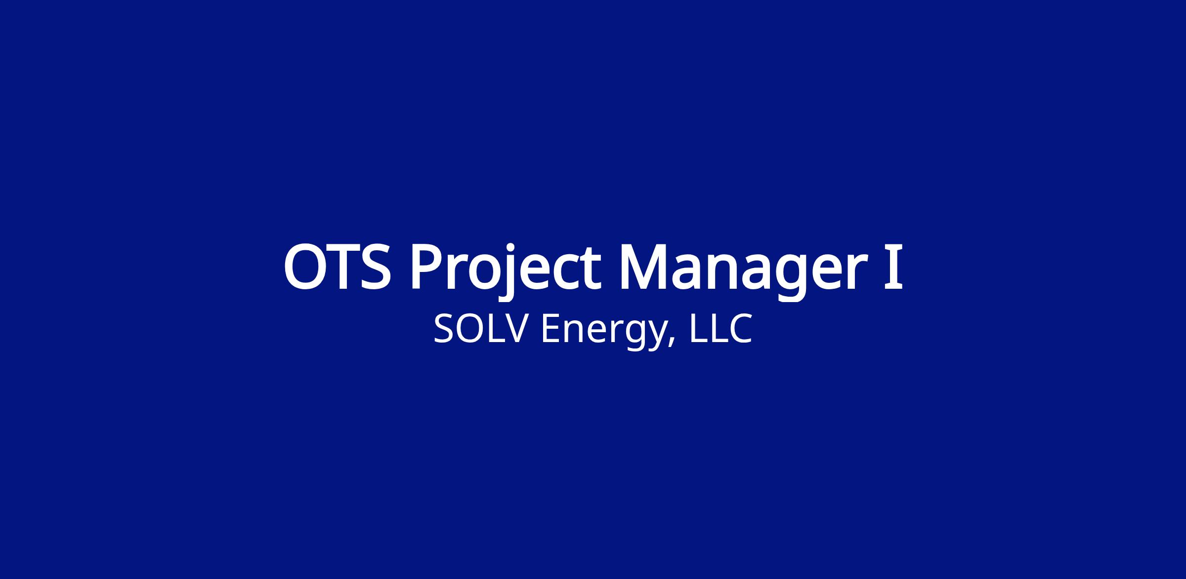 The EPC OTS Project Manager I manages utility-scale solar EPC projects related to SCADA systems, with responsibility for planning and executing project scope, schedule, and budget; coordinating stakeholders; managing risk; and ensuring quality. This role typically supports lower-complexity projects and applies established SOLV processes and standards, with guidance available from a Lead Project Manager or Portfolio Manager as needed.Job Description: