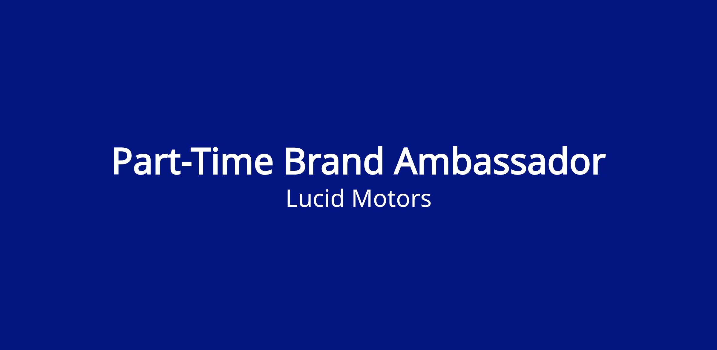 Lucid is growing our brand. A post luxury brand centered around sustainability and human experience. If you are an effective communicator, love helping people and are thinking about joining the EV revolution, come join us! The Lucid Brand Ambassador is the first point of engagement guests will have at the Lucid studio.