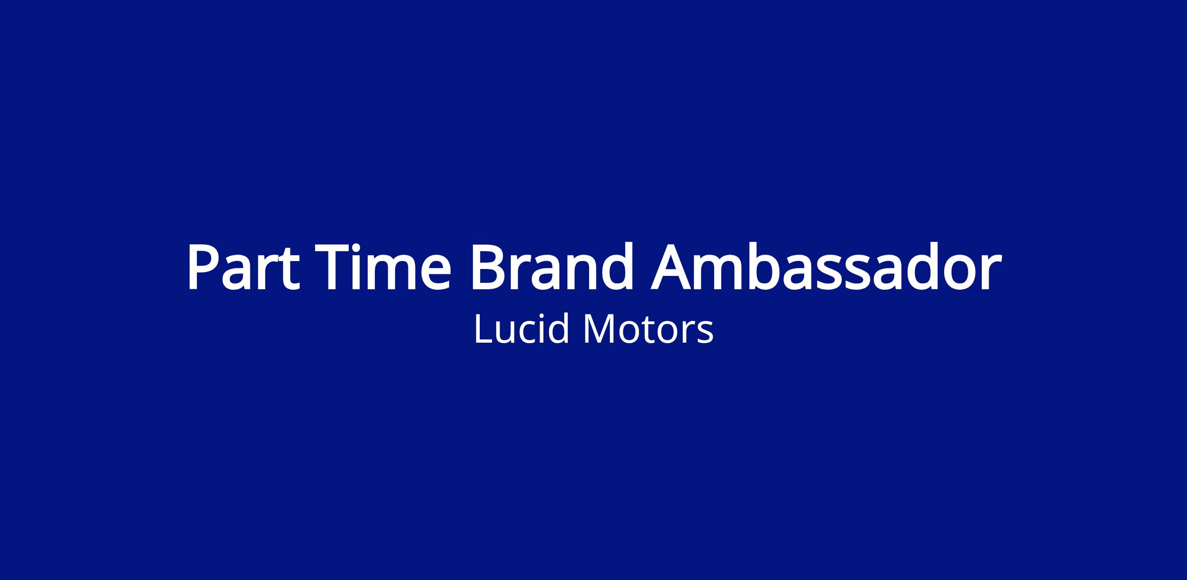 Lucid is growing our brand. A post luxury brand centered around sustainability and human experience. If you are an effective communicator, love helping people and are thinking about joining the EV revolution, come join us! The Lucid Brand Ambassador is the first point of engagement guests will have at the Lucid studio. The position offers 20–24 part-time hours per week.