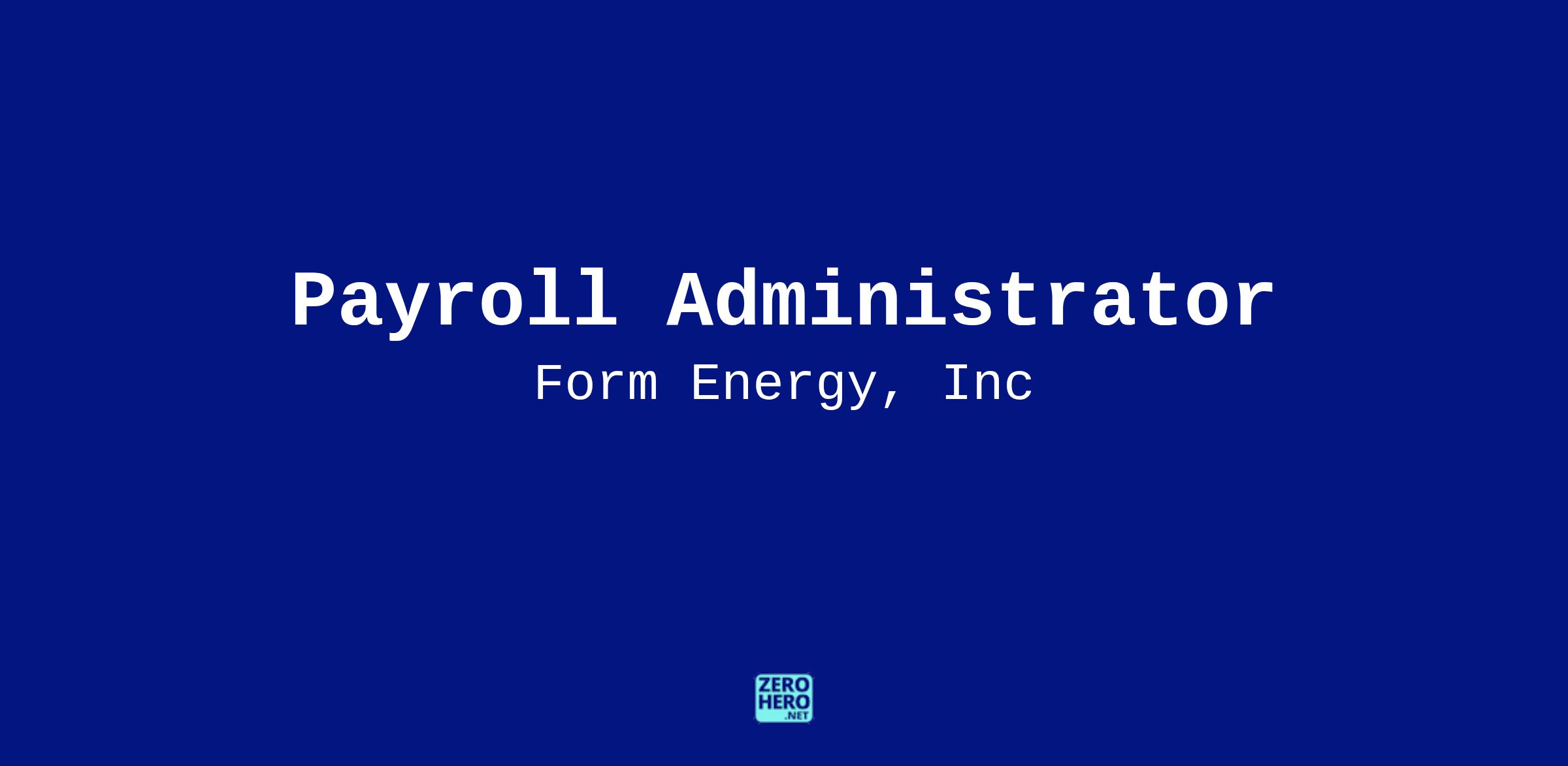 Form Energy is hiring a Payroll Administrator to support the Senior Payroll Administrator with payroll processing, reporting, audits, and employee inquiries and lifecycle events. This role reports into our Manager, People Operations on the HR Systems & Benefits team. As part of our HR Systems & Benefits team, you will be involved in onboarding, offboarding, data audits, payroll reporting, and continuing to build our Payroll Function, in partnership with all HR teams, supporting a growing factory workforce. This is an exciting opportunity to help shape and be part of the growth of a fast-moving company with breakthrough technology and an incredible mission!