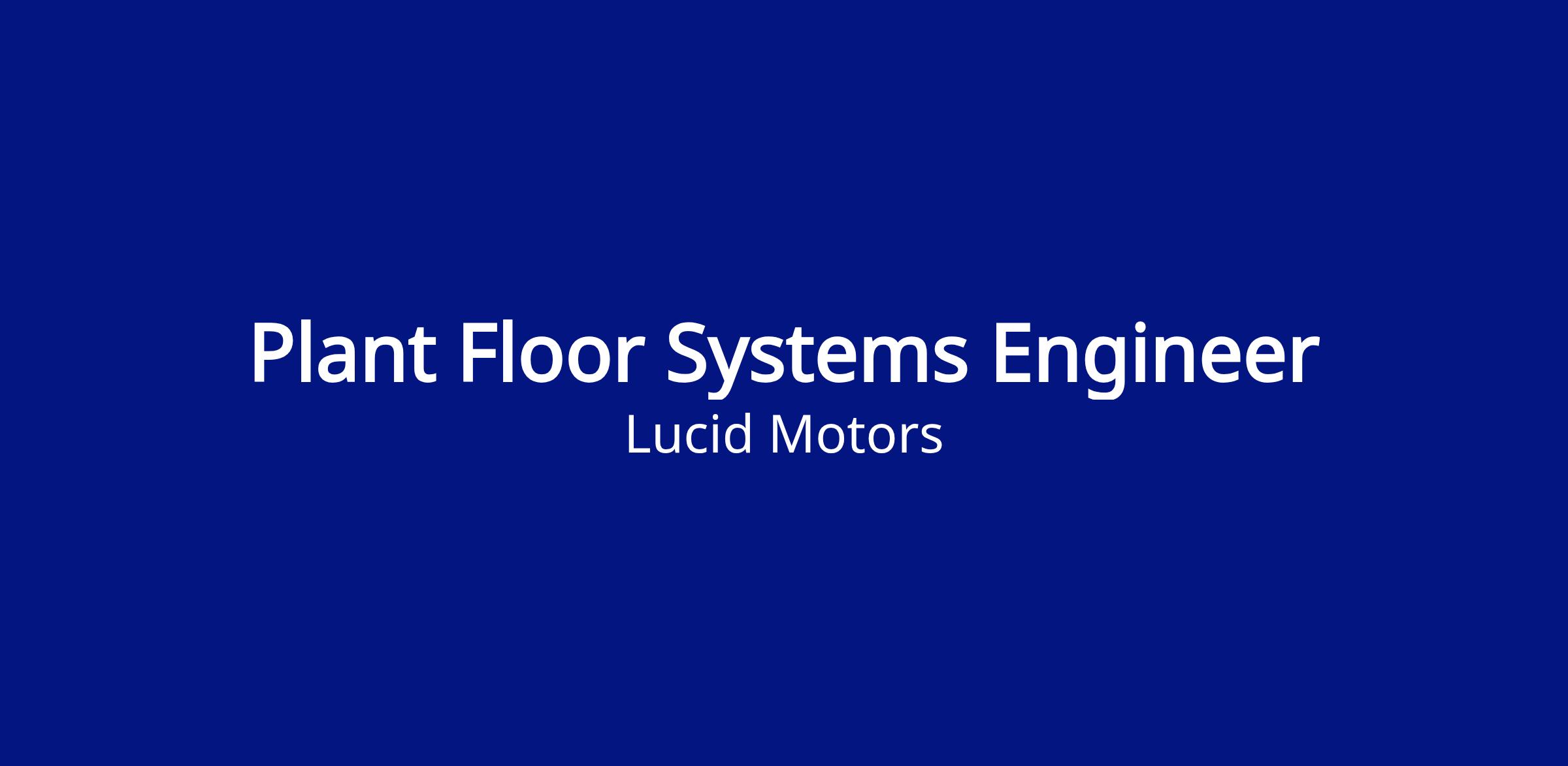 Lucid Motors is searching for a Plant Floor Systems (PFS) Engineer who will be based in Casa Grande, AZ location. The PFS Engineer will be responsible for monitoring, assessing the functionality, improvements, and maintaining MES in the plant.