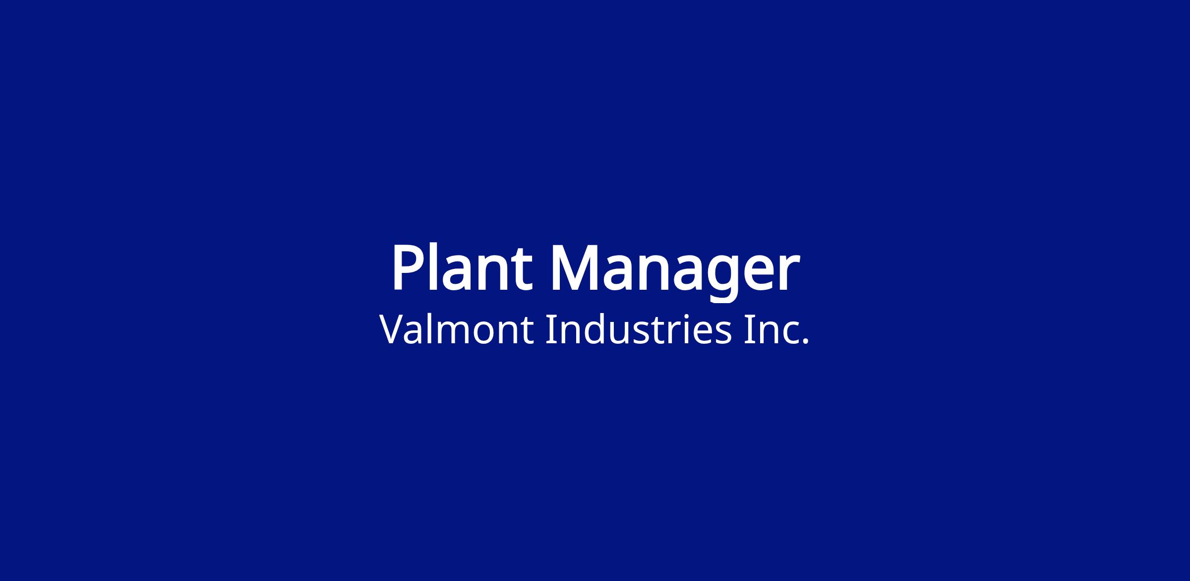 - Prior experience as a Plant Manager of a manufacturing facility