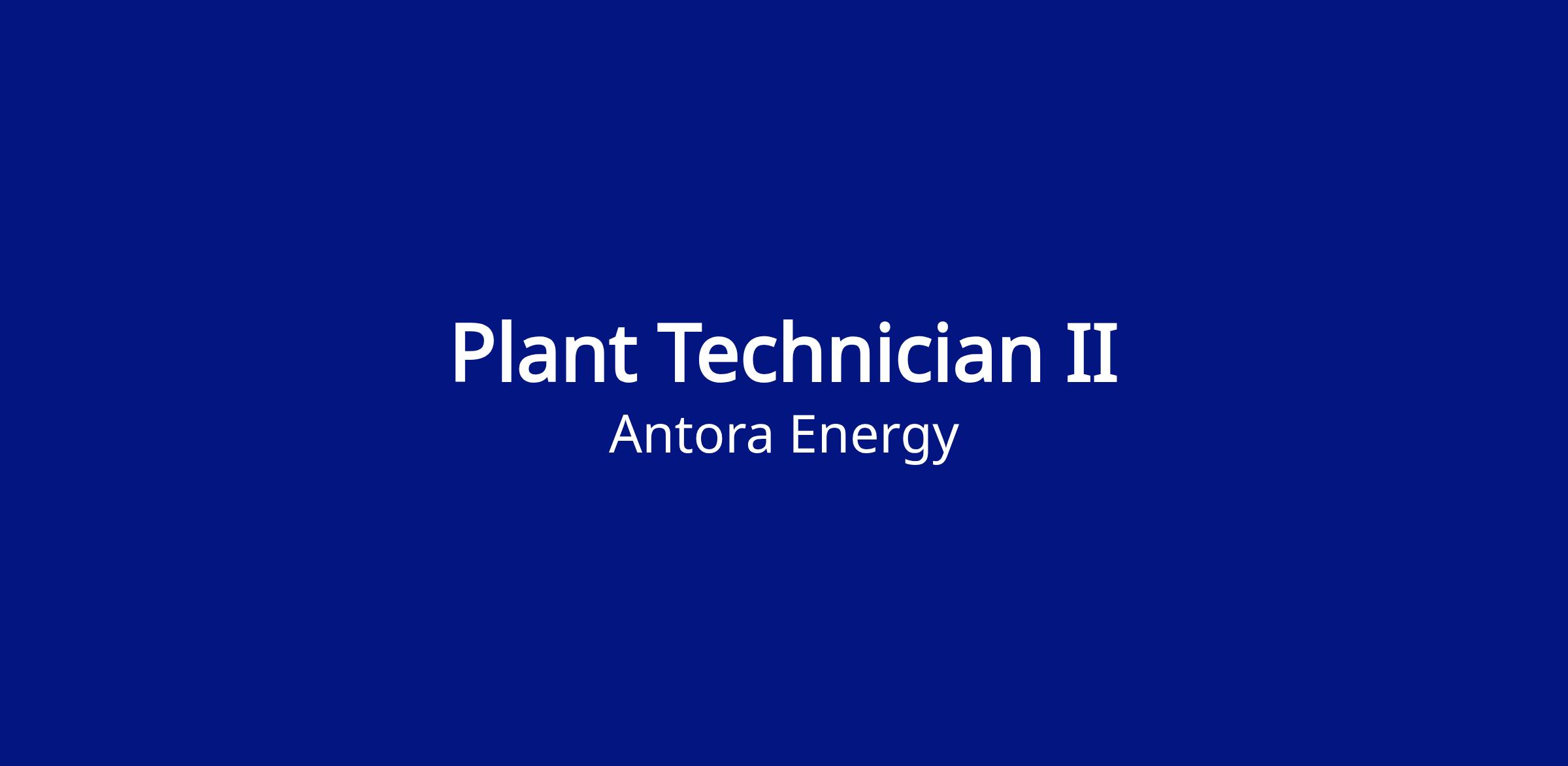 The Plant Technician II is responsible for controlling and operating thermal energy storage and boiler systems. Also will be supporting maintenance of plant systems during the installation, commissioning, and operations phases of the project. The Plant Technician II will collaborate with internal engineering, operations, and maintenance teams to safely construct, commission, and operate first-of-a-kind industrial installations of the Antora thermal battery.