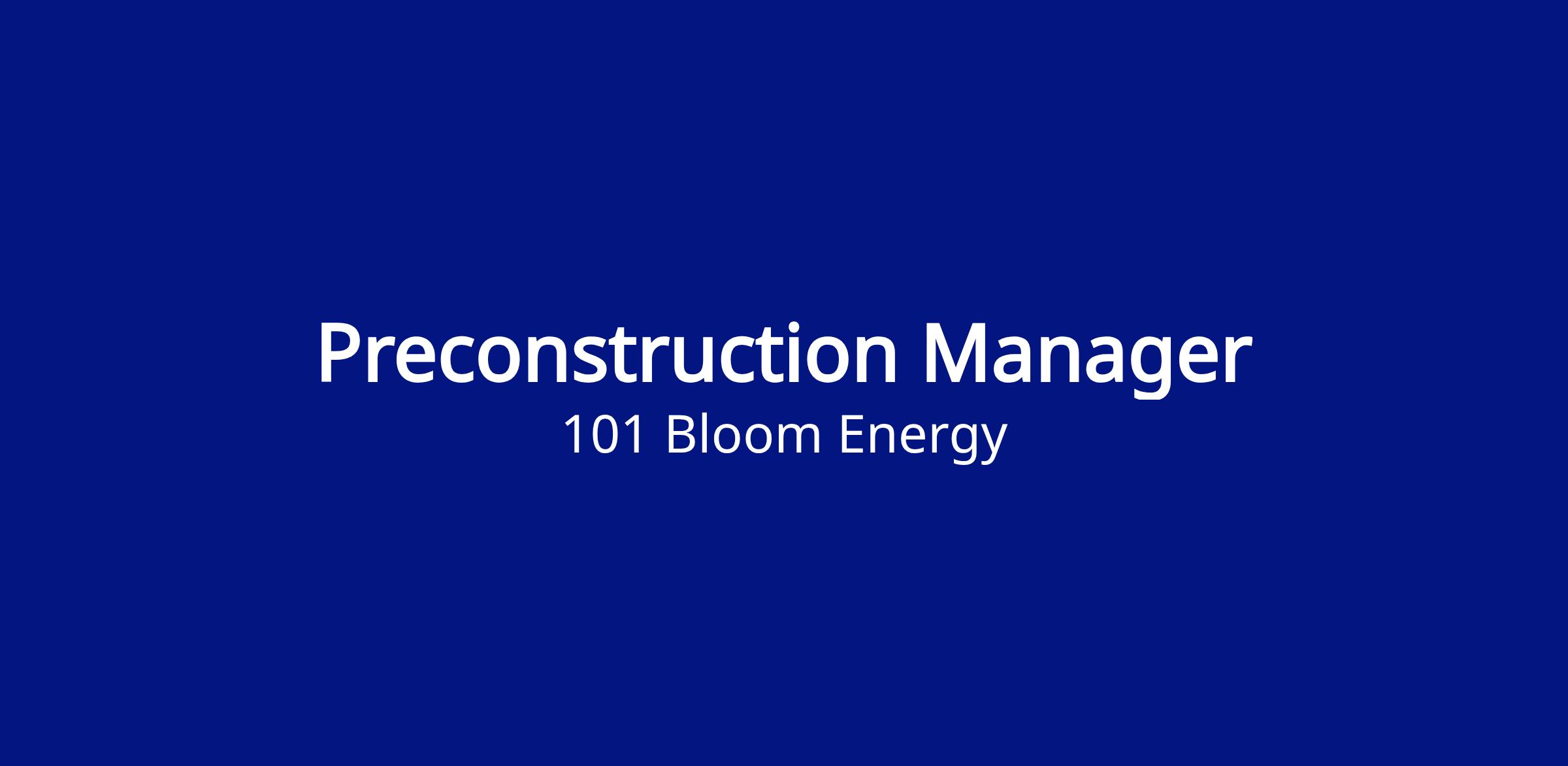 We are looking for a Preconstruction Manager to join our team in one of today’s most exciting technologies. This role will report to the Sr. Construction Contracts Manager and will be based in San Jose, CA. This is a fully on-site, in office role 5 days a week