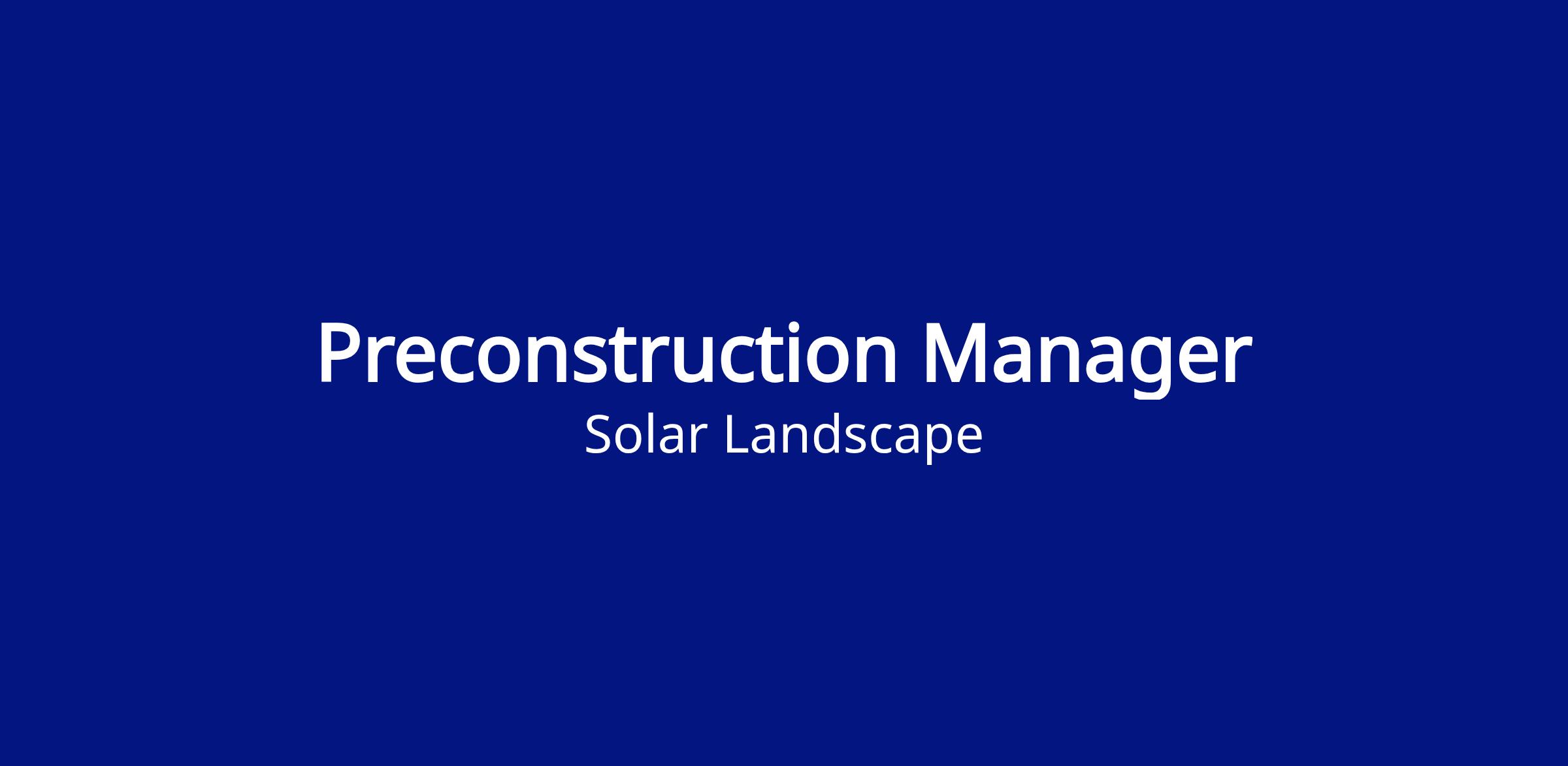 We are seeking a Preconstruction Manager (Virginia) to lead the early-stage execution of our solar projects. This role is responsible for overseeing all preconstruction activities, including project planning, budgeting, buyout, scheduling, and risk management. The Preconstruction Manager will serve as both a strategic partner and technical leader, ensuring projects are set up for successful execution while collaborating cross-functionally with internal teams and external stakeholders.