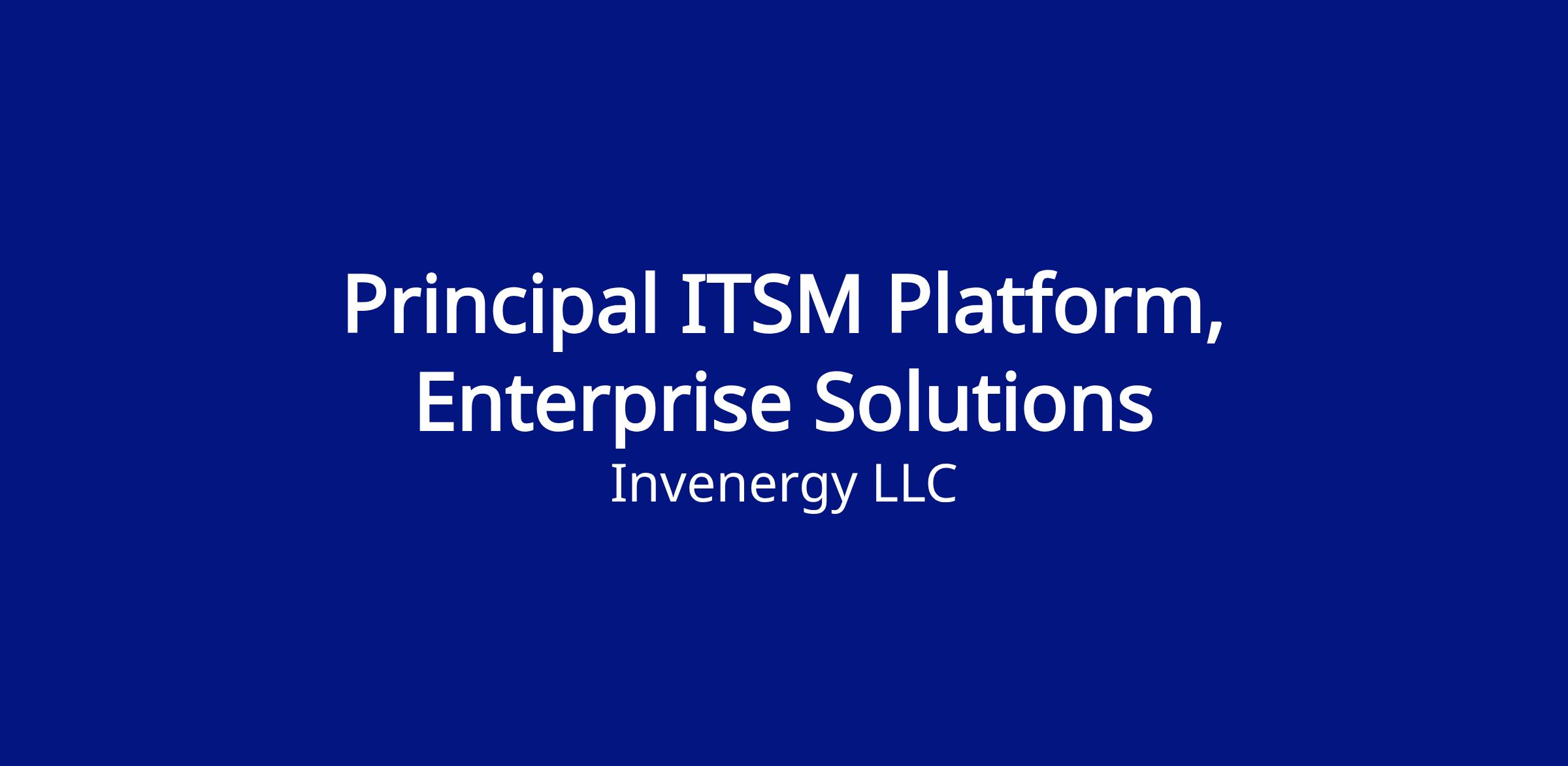 Invenergy is seeking a forward-thinking and experienced Principal ITSM Platform to own the strategic direction, roadmap, and operational stewardship of our enterprise IT Service Management (ITSM) platform. This role will lead the evolution of ITSM capabilities, drive standardization and automation across IT service delivery, and ensure alignment with our broader digital strategy. As a key member of the Enterprise Platforms team, the ITSM Platform Lead will partner with Service Delivery, IT Operations, Cybersecurity, and business-facing technology teams to advance IT process maturity, enable seamless service experiences, and support continuous improvement.