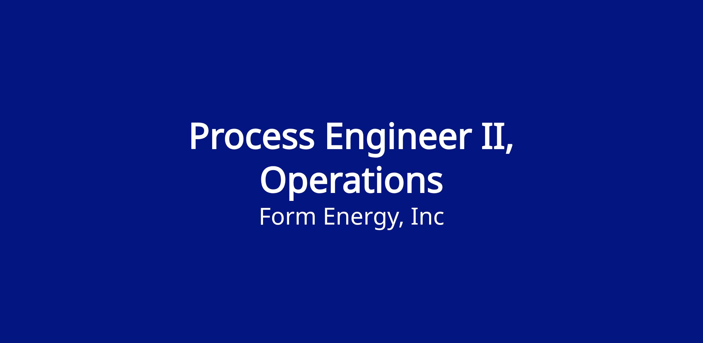 We are looking for a Process Engineer II to join our Operations Engineering team. In this role, you will be a key contributor as we scale the production of our iron-air battery technology. You will contribute to the optimization of production workflows, using data-driven insights to enhance quality, throughput, and yield. By partnering across our team to bridge the gap between process development and high-volume execution, you will ensure our manufacturing processes are both robust and scalable. Your work in driving these technical improvements directly enables the delivery of long-duration energy storage systems essential for a reliable electric grid.
