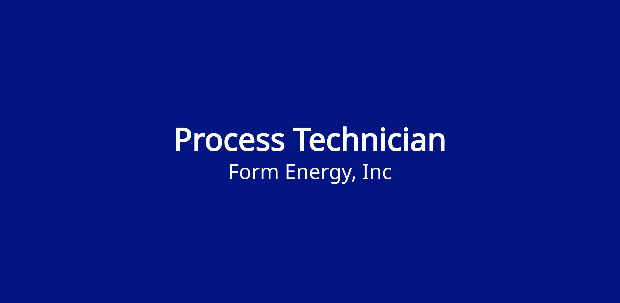 Form Energy is hiring a process engineering technician to support our operations engineering team. In this role, you will be involved in engineering projects, new process deployment, and continuous improvement in partnership with production teams. This is an exciting opportunity to help shape and be part of the growth of a fast-moving company with breakthrough technology and an incredible mission!