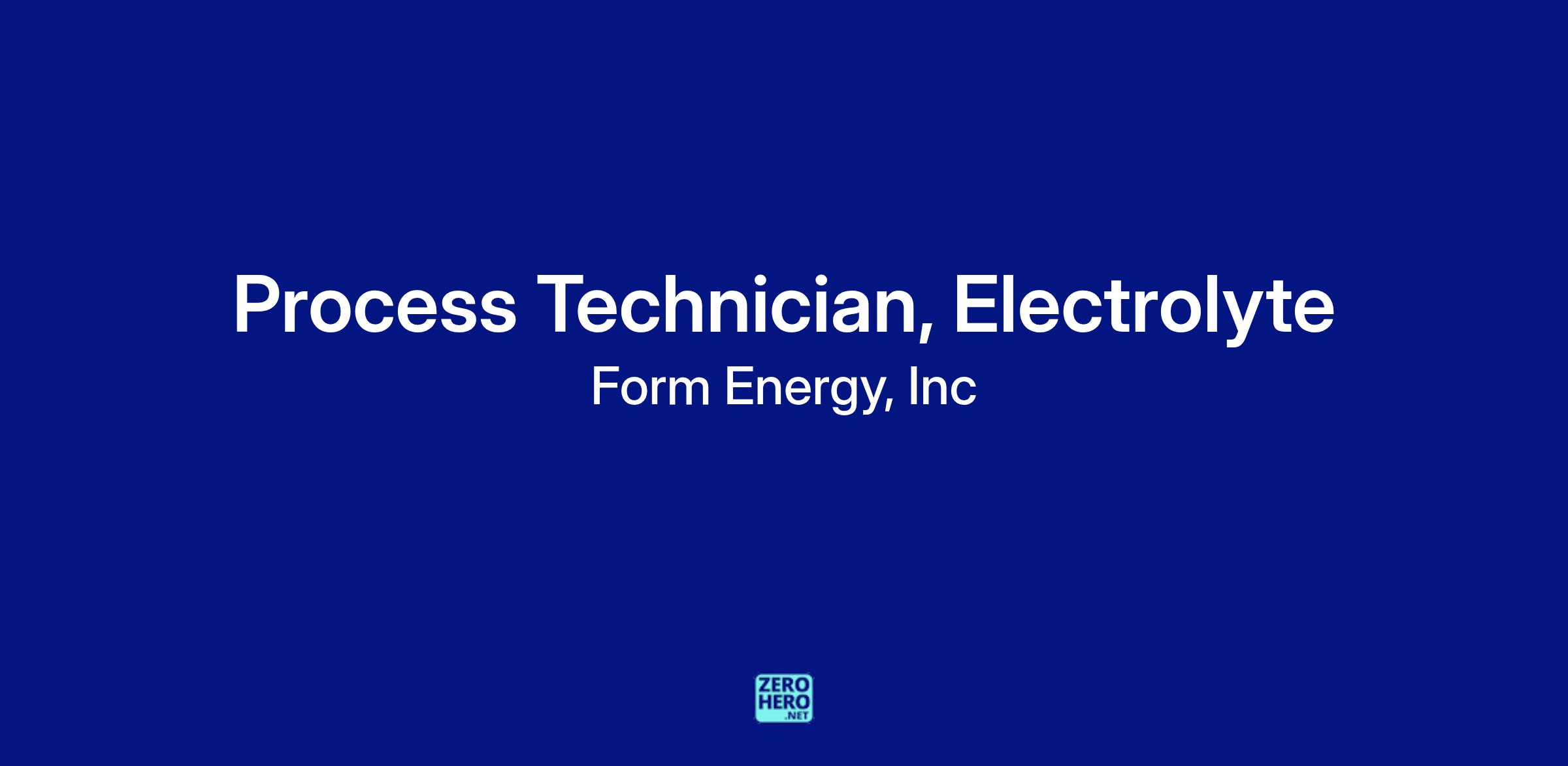 Form Energy is hiring a skilled Process Technician to join our Development Operations Process team. This team is responsible for our aqueous electrolyte production and analysis workstreams. In this role, you will synthesize, document, and characterize electrochemical solutions in direct collaboration with process engineers and scientists. This is an exciting opportunity to help shape and be part of the growth of a fast-moving company with breakthrough technology and an incredible mission!