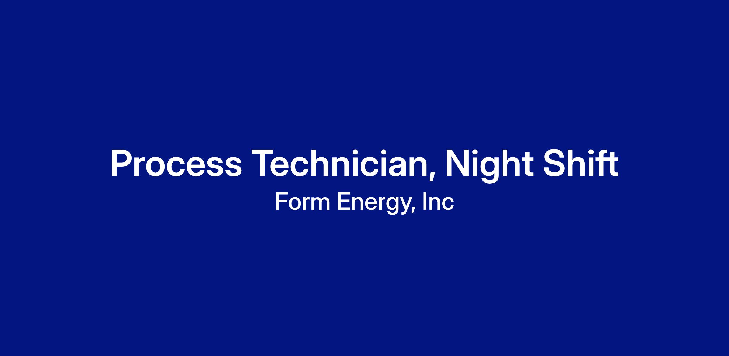 Form Energy is hiring a process technician to support our operations team. This role reports into our Operations Sustaining organization . As part of our sustaining team, you will be involved in new process deployment and stabilization in partnership with production teams. This is an exciting opportunity to help shape and be part of the growth of a fast-moving company with breakthrough technology and an incredible mission!