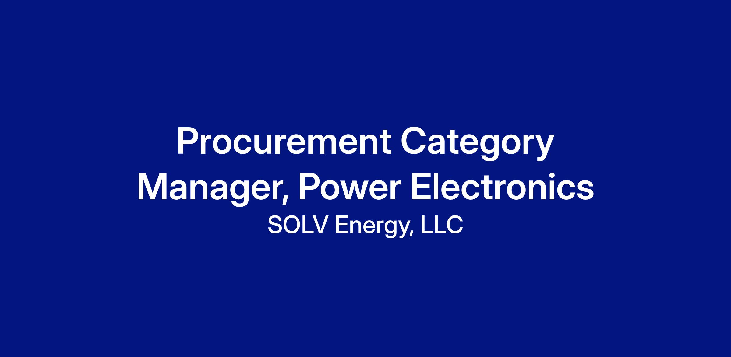 Proven experience in category management, sourcing, and supplier relationship management within the PV, BESS, or related industries.