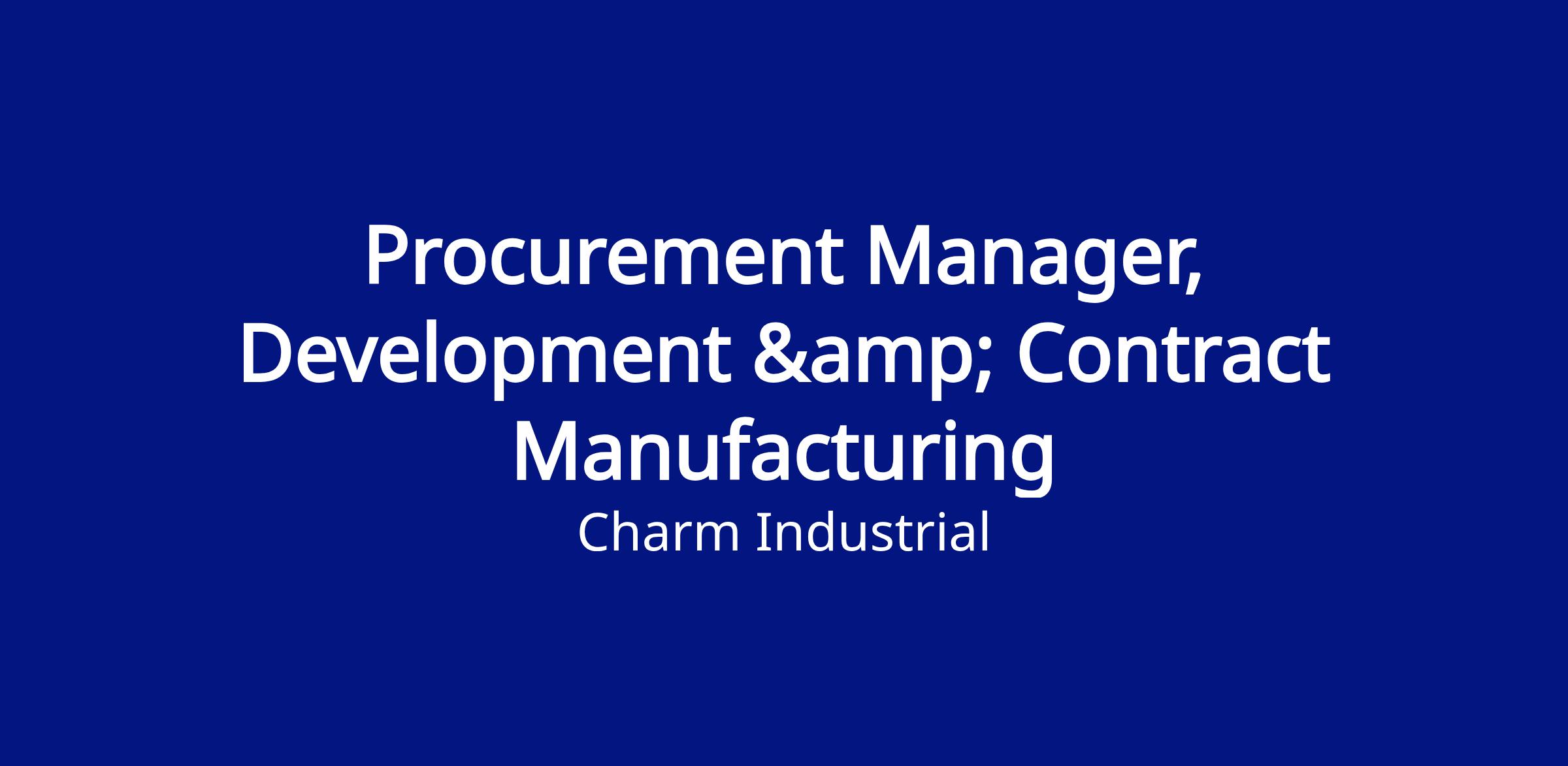 Charm is entering a critical phase of scaling our next-generation pyrolysis and injection systems through external manufacturing partnerships and internal development hardware build & test campaigns. As Procurement Manager, Development & Contract Manufacturing, you will serve as the primary liaison between Charm and our contract manufacturer responsible for building the next iteration of our pyrolysis machines and injection skids, while also supporting routine procurement activity based on engineering purchasing requests for in-house system development.