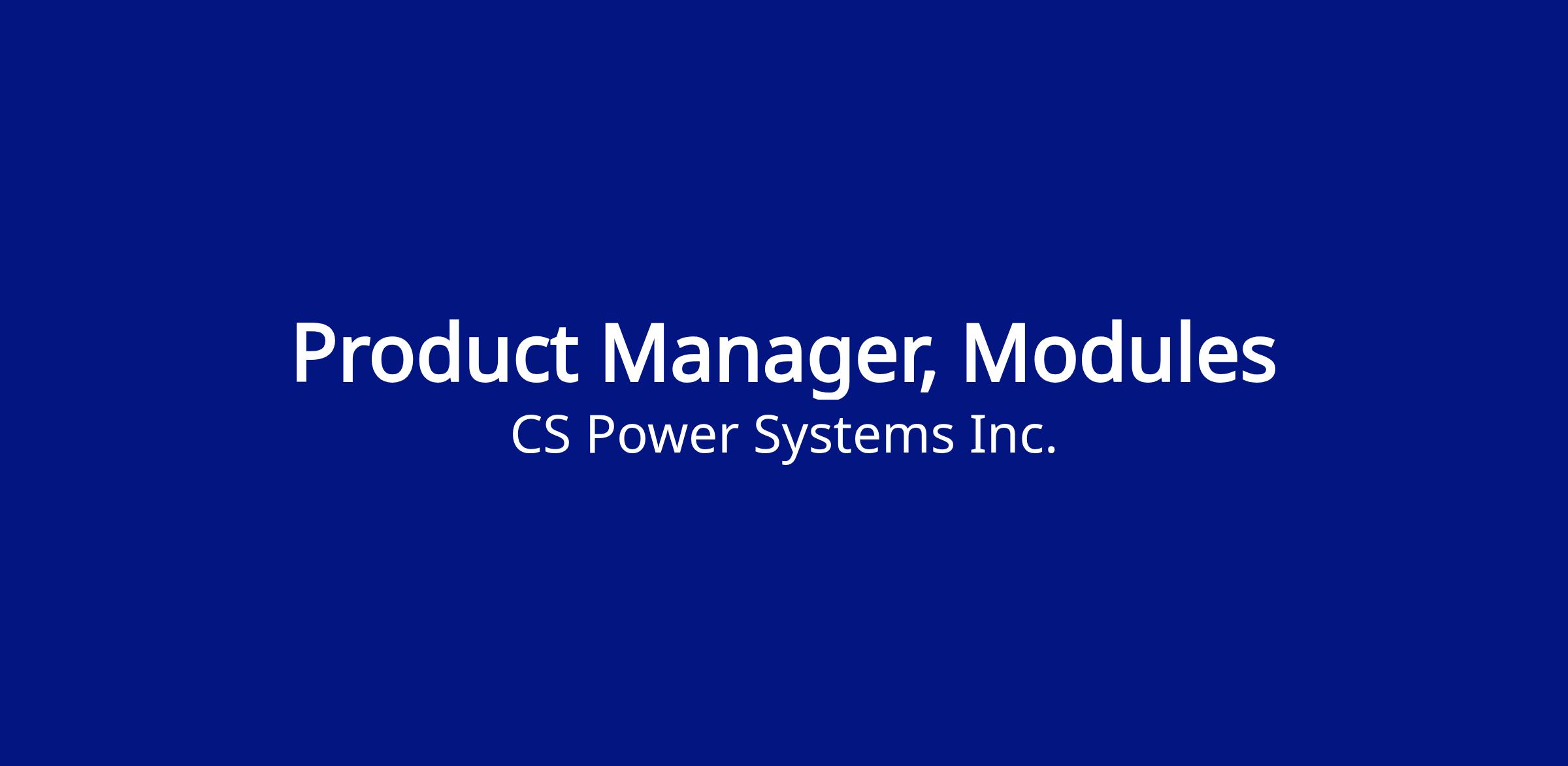 CS Power Systems is actively seeking a Product Manager to join the Americas Module System & Solutions Team. The manager will play a critical role by strategically managing elements of the existing and future US & Americas product portfolio and its life cycle and be the direct communication link with sales, customers, and headquarter personnel abroad.