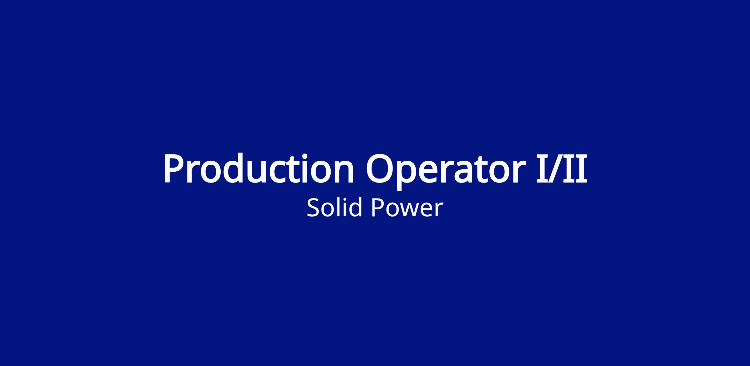 Solid Power is seeking a Production Operator to join our talented team working to revolutionize the battery industry through the development of next-generation, all solid-state rechargeable batteries. Solid Power is a dynamic, fast-paced, collaborative team environment. The Production Operator supports daily manufacturing of electrolyte powder used in next-generation battery materials. This role involves operating production and powder-handling equipment, following strict safety and quality procedures, and ensuring consistent product output. The ideal candidate is reliable, detail-oriented, and comfortable working in a controlled chemical production environment.