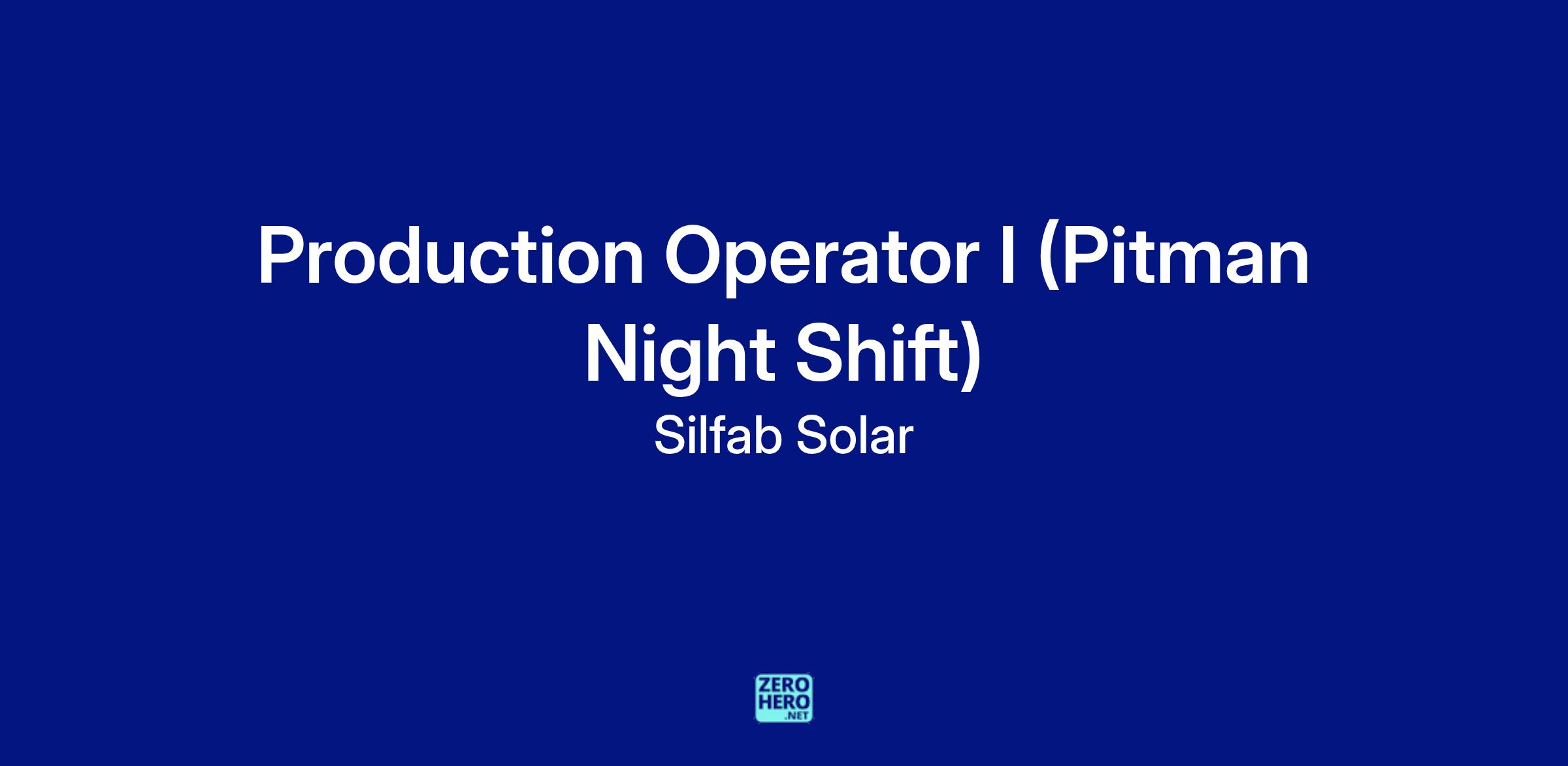 Production Operator I (Pitman Night Shift)