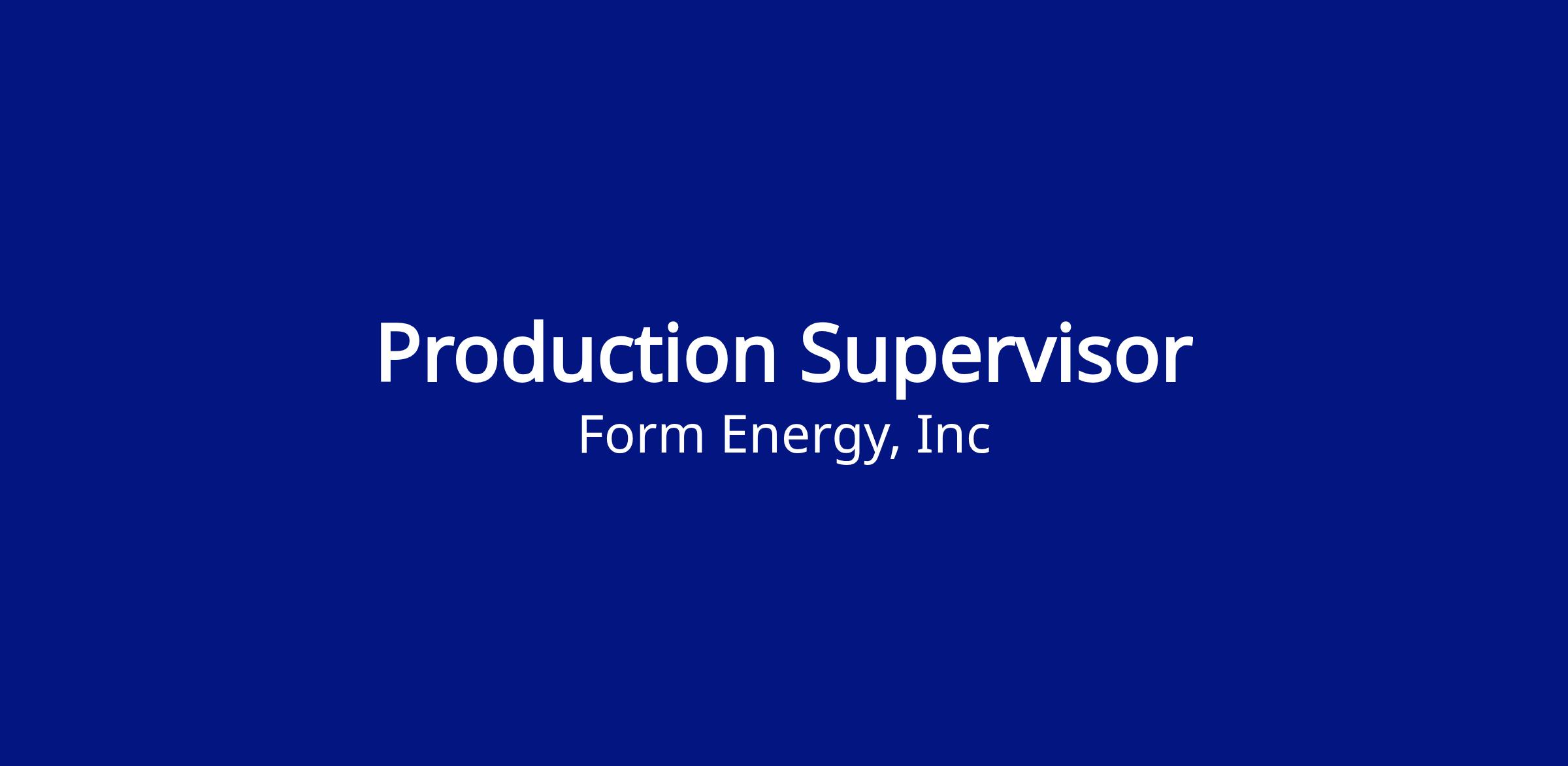 Form Energy is seeking an experienced and dynamic Production Supervisor to join our team at Form Factory 1 in Weirton, WV, overseeing our Pack assembly production operations.