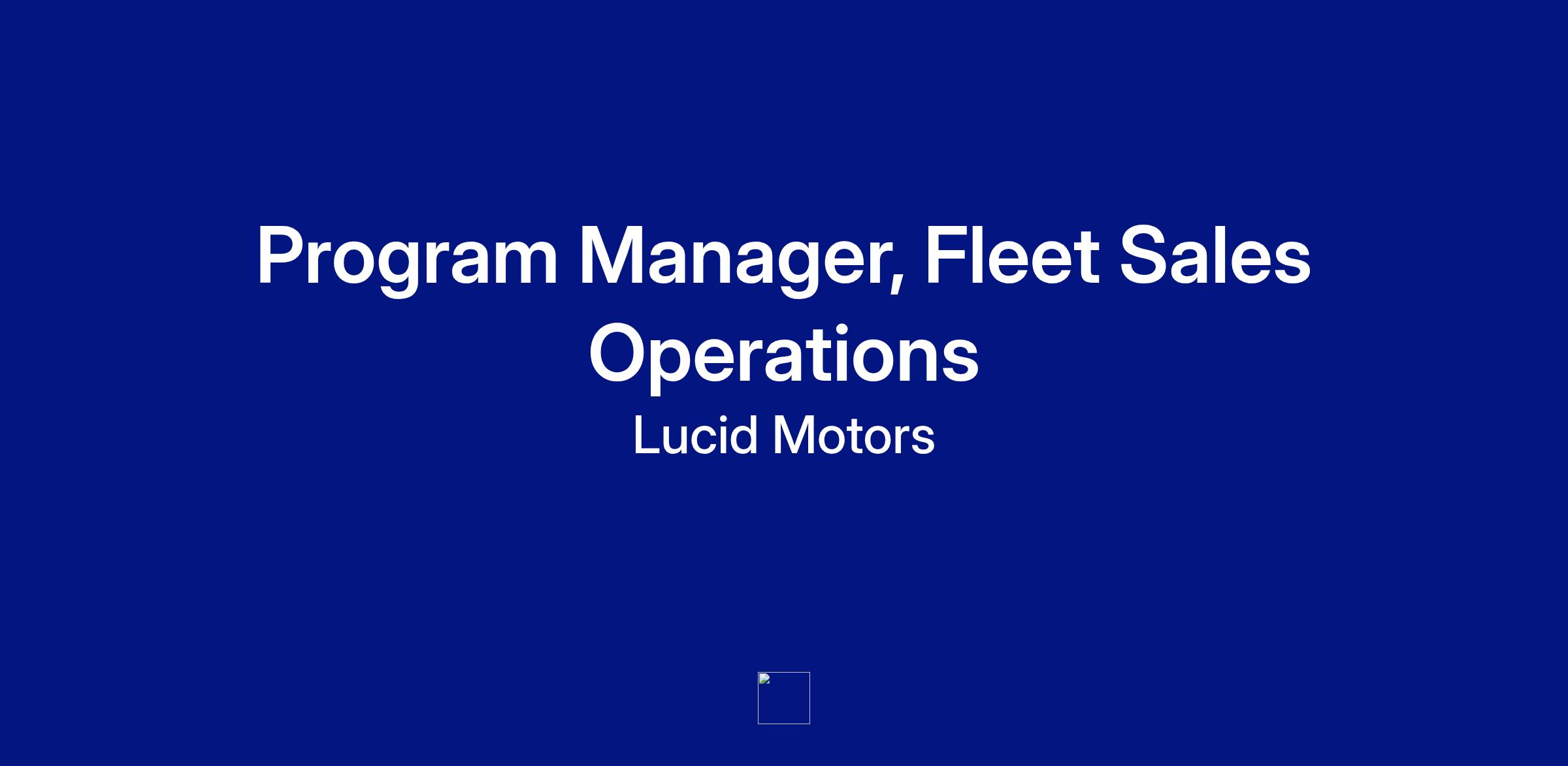 The Sales organization at Lucid is currently seeking a Program Manager, Fleet Sales Operations to assist the Head of Fleet Sales with overall fleet sales strategy. This position requires an experienced professional with a track record of successfully liaising with fleet partners and fleet customers. Our ideal candidate exhibits a can-do attitude, and approaches work with vigor and determination. Candidates will be expected to demonstrate excellence in their respective fields, to possess the ability to learn quickly and to strive for perfection.