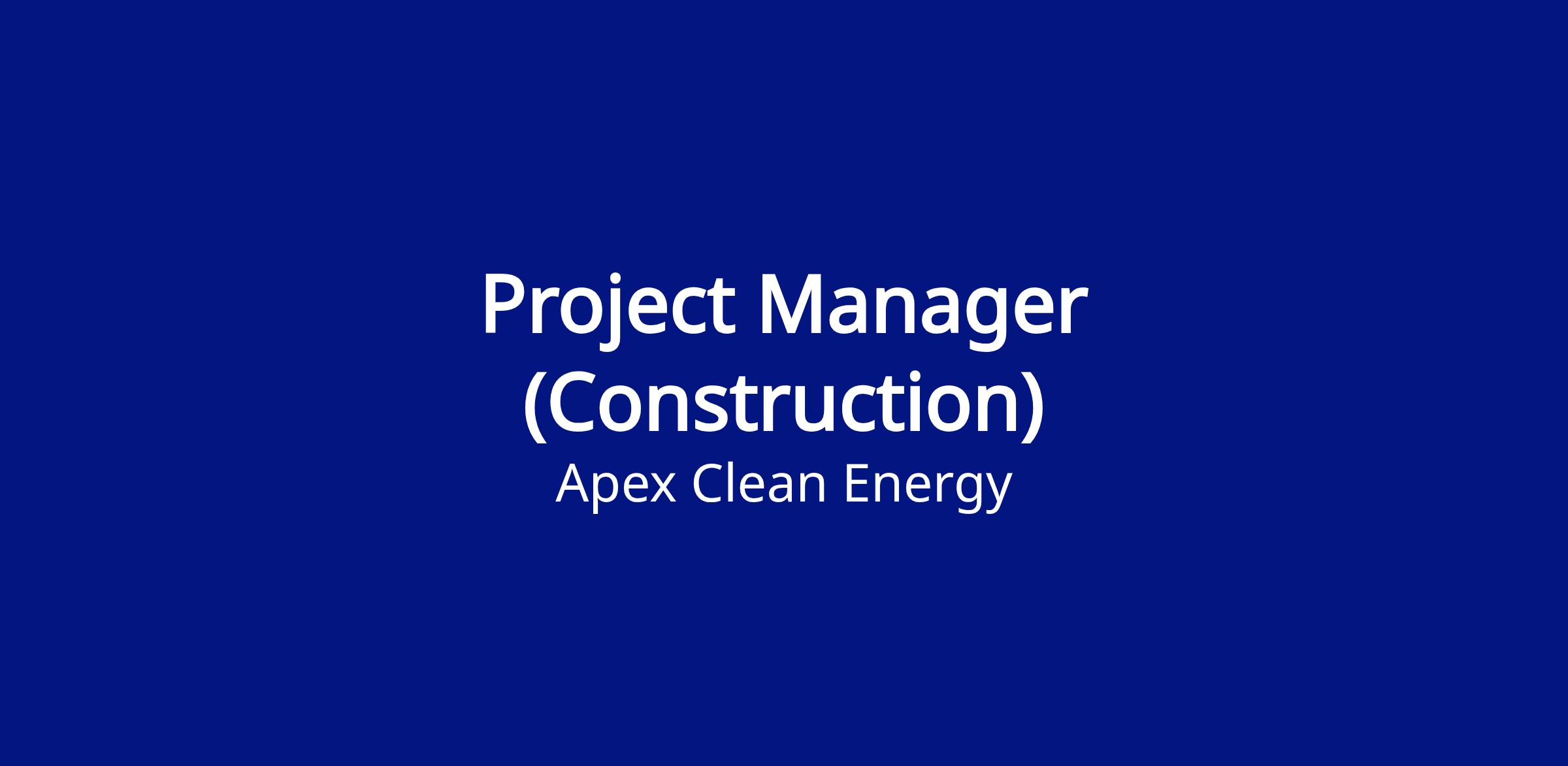 Apex Clean Energy is seeking an experienced Project Manager to manage various construction phases of utility-scale renewable energy projects. The project manager will be responsible for the early to mid-stage activities including managing project schedules, project budgets, stakeholder communication, constructability reviews, risk analysis, and change management.