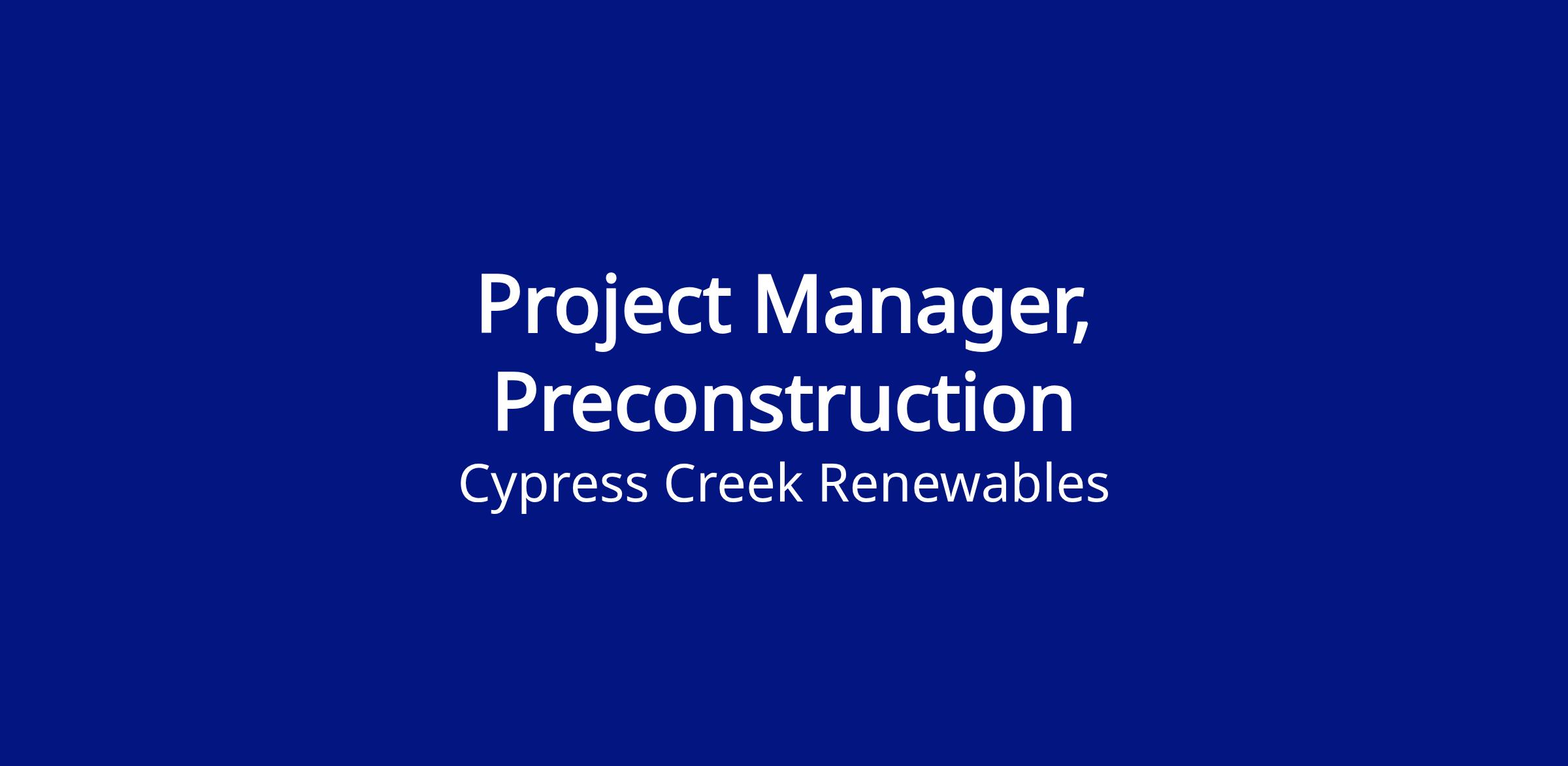 Cypress Creek, a renewable energy project developer and owner (the "Company") is seeking a Project Manager of Pre-Construction reporting to the Director of Pre-Construction.