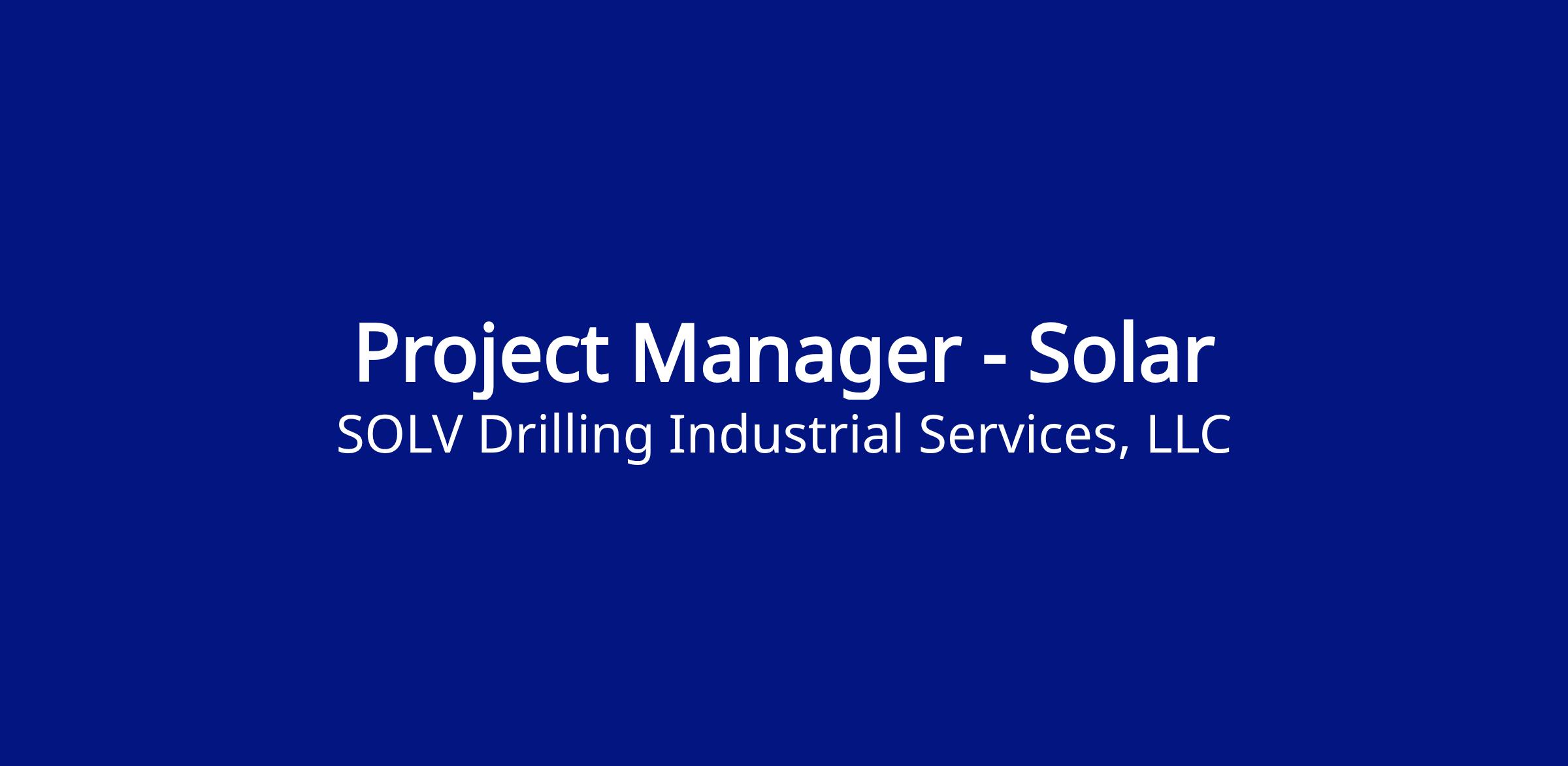 As a recognized leader in solar predrill and pile foundation installation for more than 25 years, SDI Services is now part of SOLV Energy—expanding our collective capability to deliver high‑quality infrastructure services to the power industry. By joining SOLV Energy’s comprehensive capabilities, SDI adds specialized expertise, expanded field capacity, and a robust fleet of drilling equipment to support exceptional project execution. Together, we’re improving performance across the full lifecycle through integrated solutions, reliable delivery, and proven experience serving utility‑scale solar projects.Job Description: