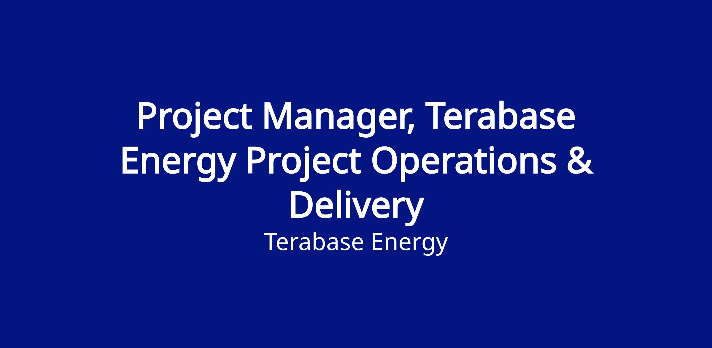 Principles only. This role is not open to receiving agency candidates, and any contingent submissions will not be considered. Terabase Energy does not utilize third-party recruitment agencies. Please contact our Recruiting team at careers@terabase.energy with any staffing-related inquiries.