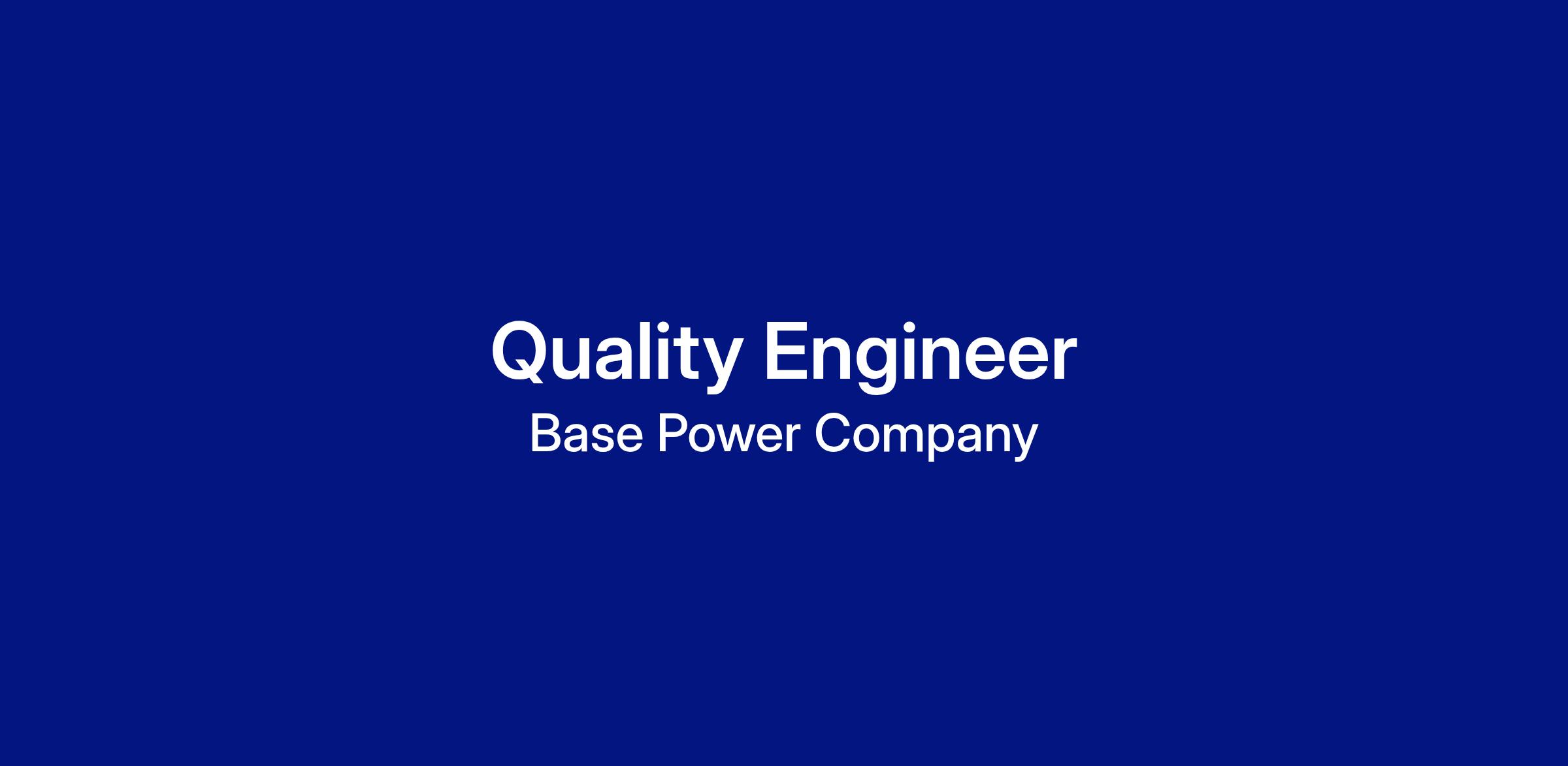 Base is looking to hire a Quality Engineer to support our in-house manufacturing processes, ensuring quality, safety, and reliability of our manufactured components and assemblies. You will work collaboratively with hardware design and manufacturing engineering teams to define and implement quality standards, product and process requirements, and manufacturing quality control plans. Base is a demanding and fast-paced environment where you will work with a highly motivated team on extremely challenging projects.