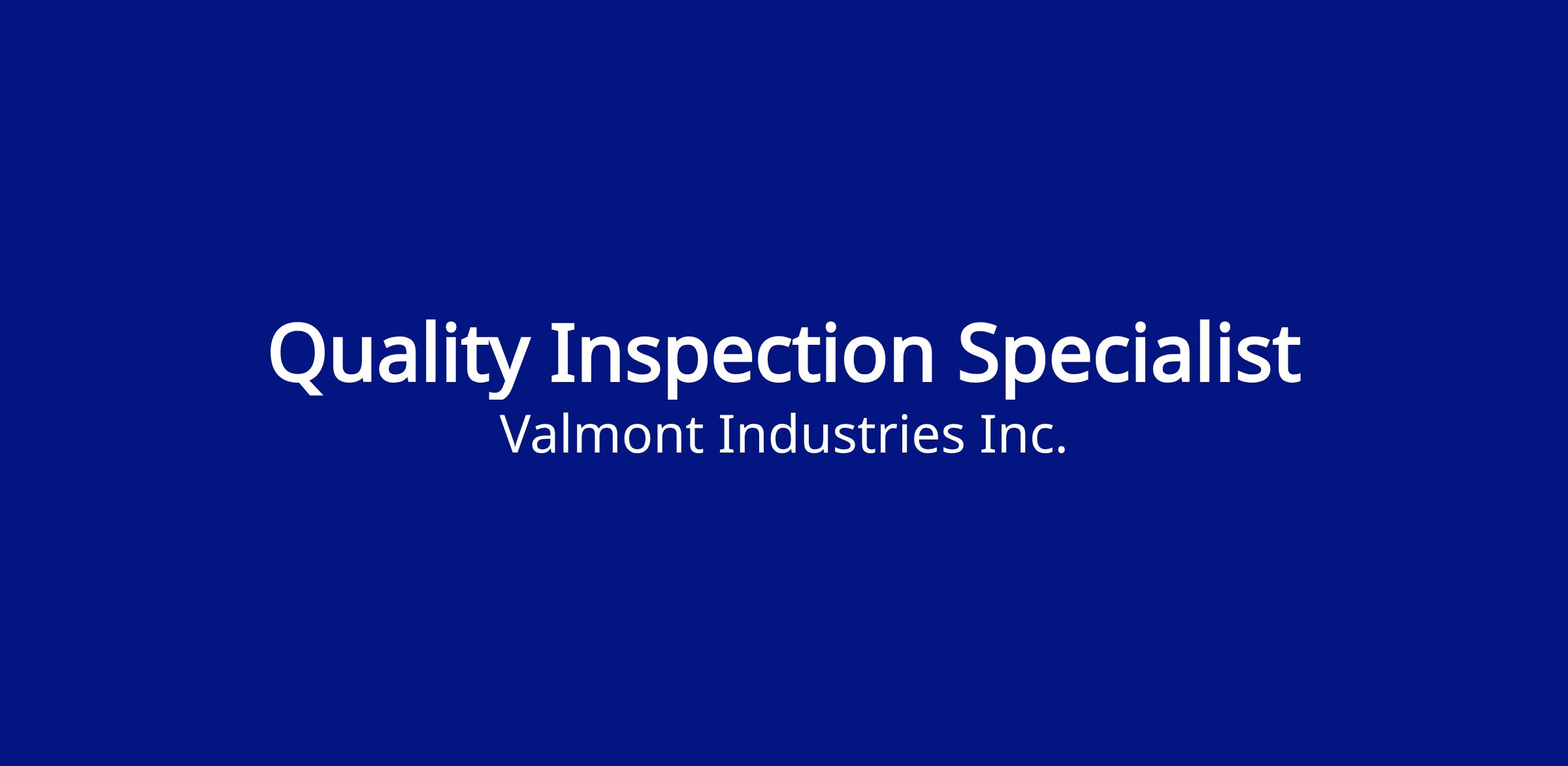 This position ensures that quality of manufactured or purchased products conforms to customer specifications, Valmont specifications and nationally recognized standards. The position seeks to improve product quality through working with production personnel and manufacturing quality processes. Duties also include training and certification of personnel in inspection. The incumbent is required to assist with implementing inspection best practices across Valmont’s North American Infrastructure footprint. They interface with manufacturing and engineering on design problems. It is extremely important that the incumbent use a diplomatic approach in dealing with others and sells quality as something that is easier and less expensive than poor workmanship, which could result in lost markets, expensive rework, and/or costly product liability. The incumbent should promote and sell an attitude that quality is economical and will insure the future of the company. The incumbent may also be requested to train employees new to the Quality Assurance Department.