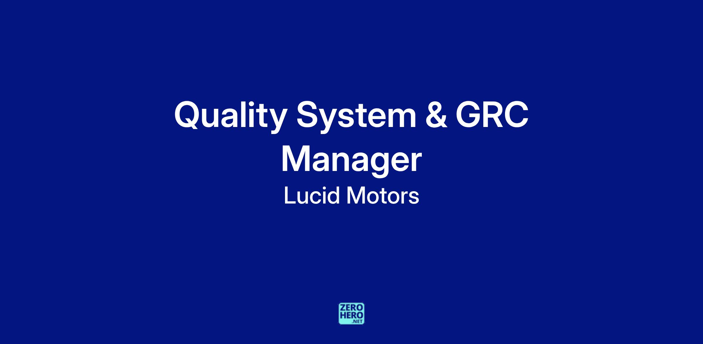 Lucid Motors is looking for a highly motivated QMS and GRC Manager to work in a challenging and fast-paced environment where you will work with a highly motivated team on challenging projects. In addition to developing the ISO 9001 Quality Management System, the QMS and GRC Manager work with cross-functional teams throughout the entire product lifecycle. You will work closely with Design Engineering, Homologation, Legal, Launch, Quality and Production to define, deploy and implement all regulatory requirements within all manufacturing shops to comply with regulation in all countries where Lucid is expanding its market.