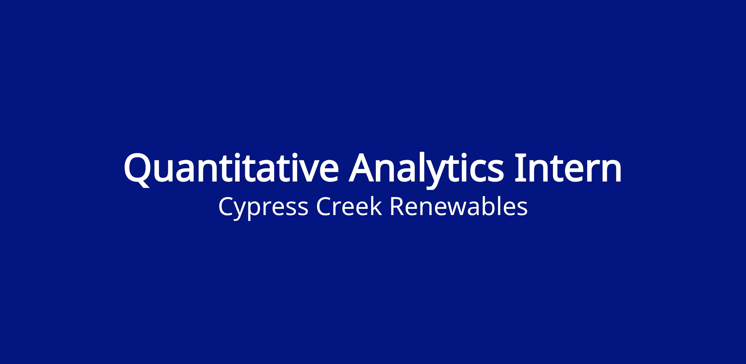 The Quantitative Analytics Team at Cypress Creek is responsible for all the analytics that goes into revenue optimization and risk mitigation of the Company’s development pipeline and operating portfolio of solar and storage projects.