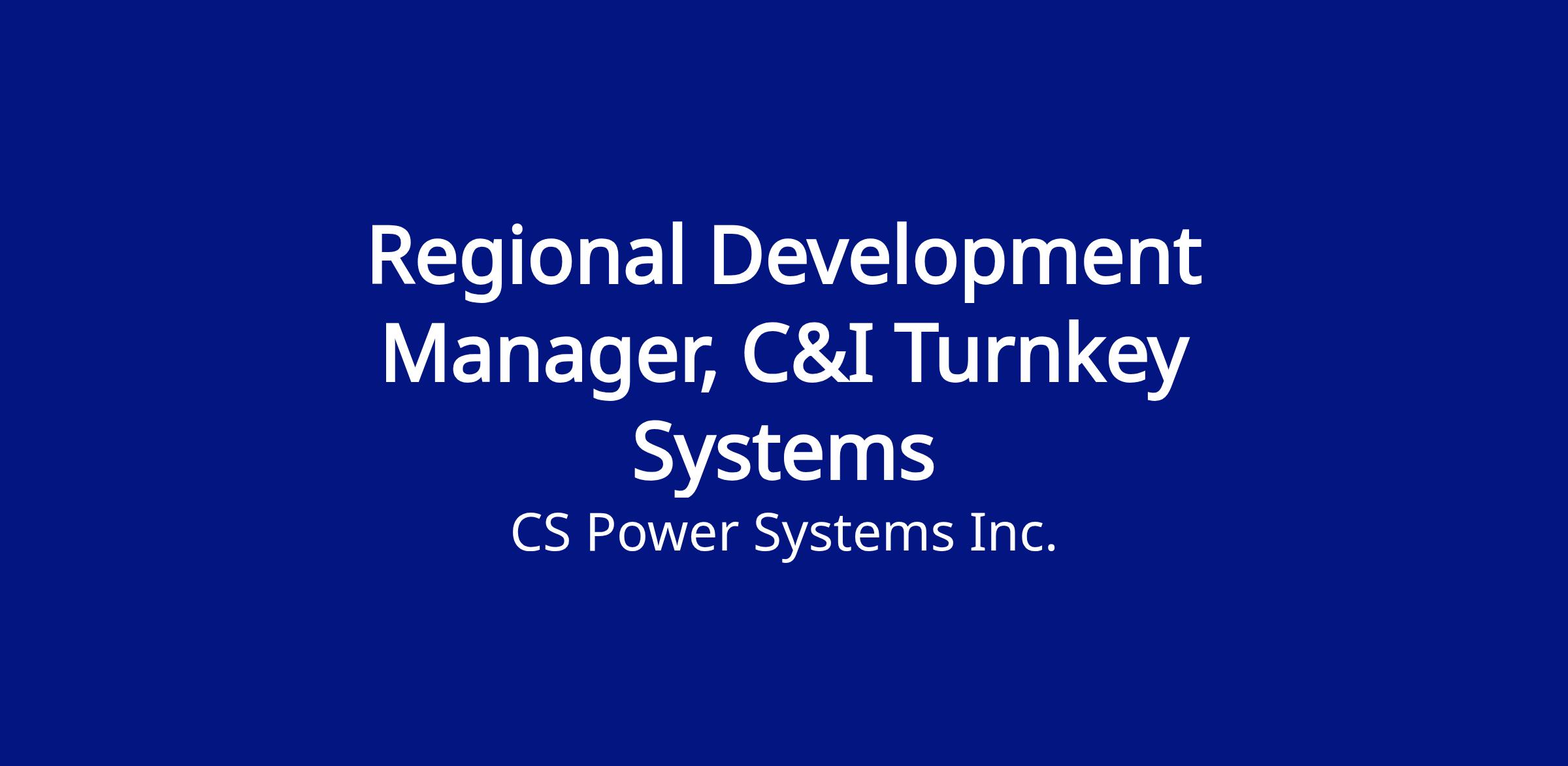 Position Title: Regional Development Manager, C&I Turnkey Systems