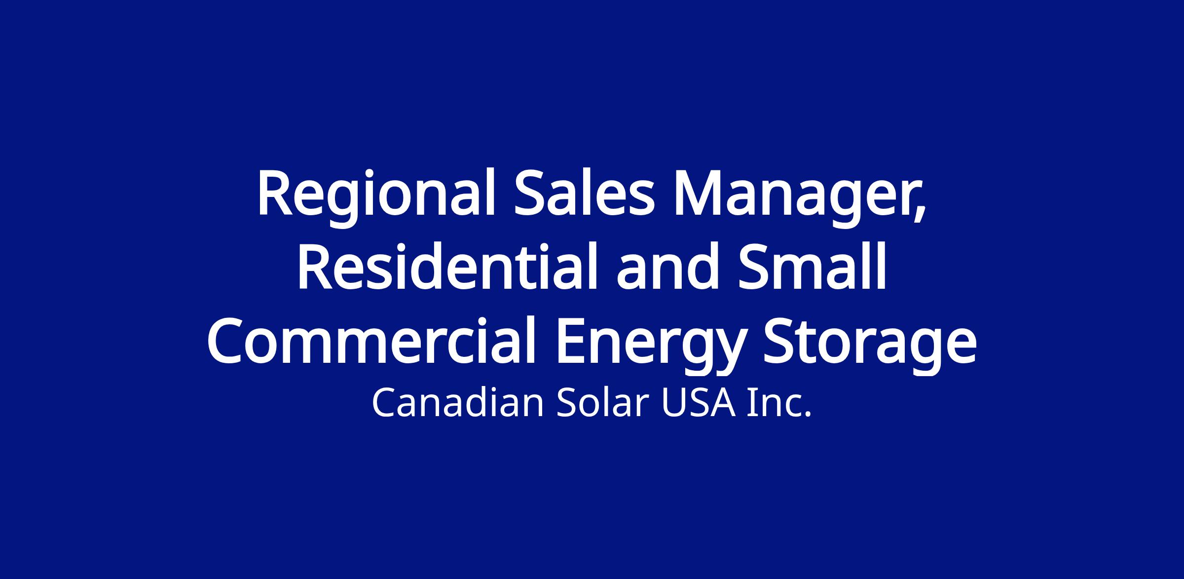Regional Sales Manager, Residential and Small Commercial Energy Storage