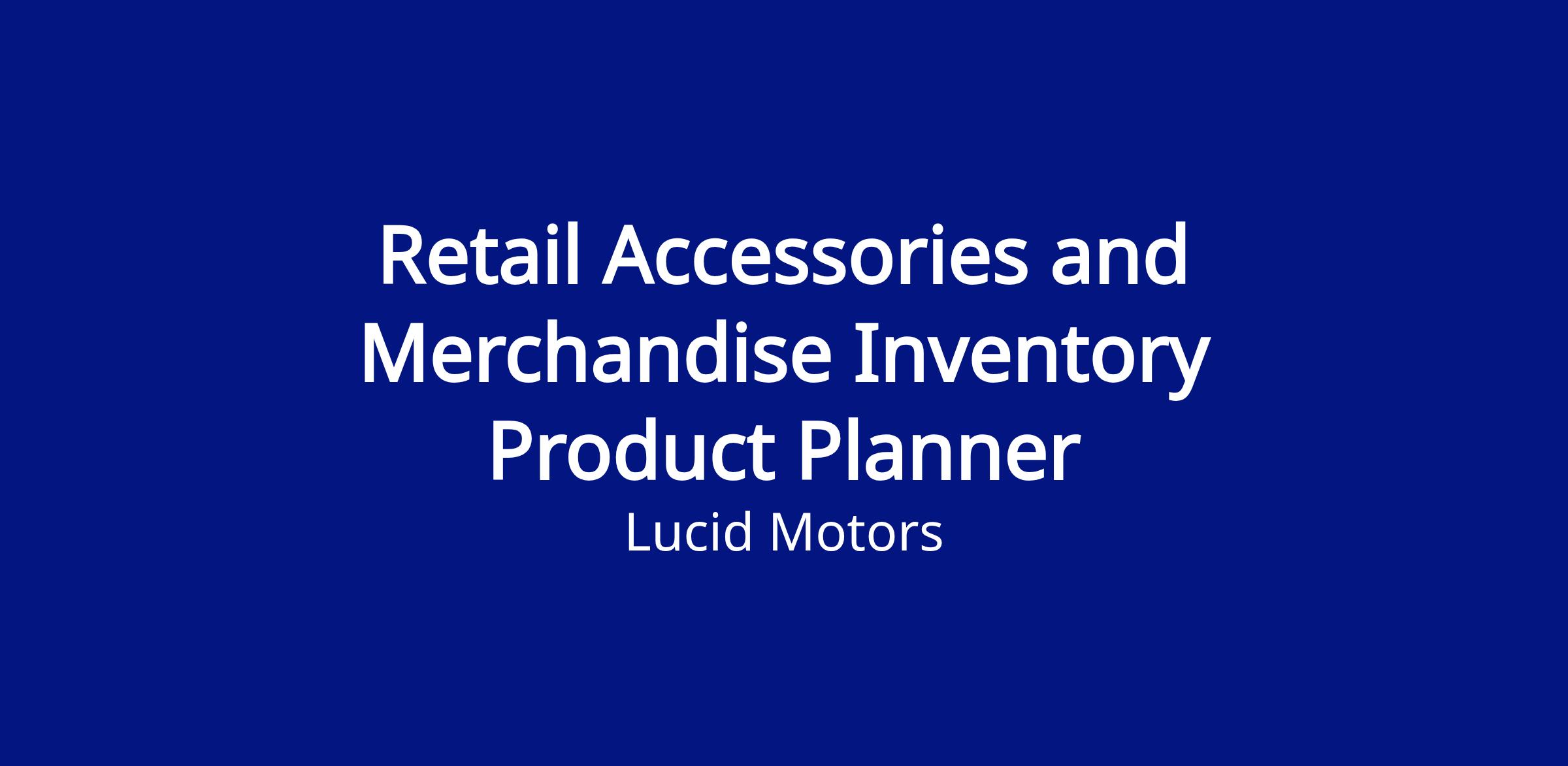 Lucid Motors is building our Retail Accessories and Merchandise team in Newark, CA (SF Bay Area). We are currently seeking a Retail Accessories and Merchandise Inventory Product Planner to join our collaborative team. This role will coordinate inventory needs for Lucid’s growing eCommerce and Retail channels as well as corporate and employee programs.