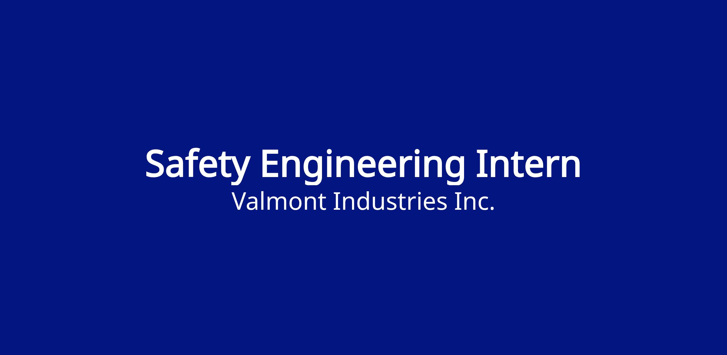 Valmont is currently seeking a highly motivated and talented individual for the Safety Engineering Intern position on the Global EHS team. We are looking for a highly driven individual that will be an active participant in contributing to the goals of the Safety Engineering team, while learning best practices from some of the finest Engineers in the world. You will learn a tremendous amount in this role and will be given exposure to other parts of the business, including subject matter experts from a wide variety of divisions and professions. Valmont’s internship program mission is to provide a hands-on learning experience through project work, leadership development, job shadowing and interaction with senior leadership.