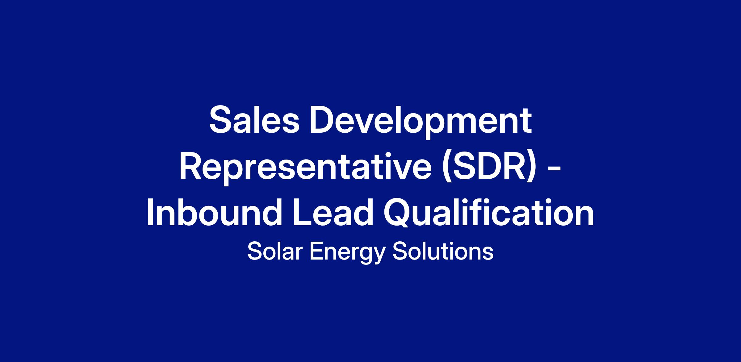 As the first point of contact for most new prospects, the Sales Development Representative (SDR) plays a critical role in shaping the customer experience and setting the stage for successful solar sales. This position focuses on handling inbound inquiries—primarily from prospective customers—and qualifying leads for handoff to our Solar Consultant sales team.