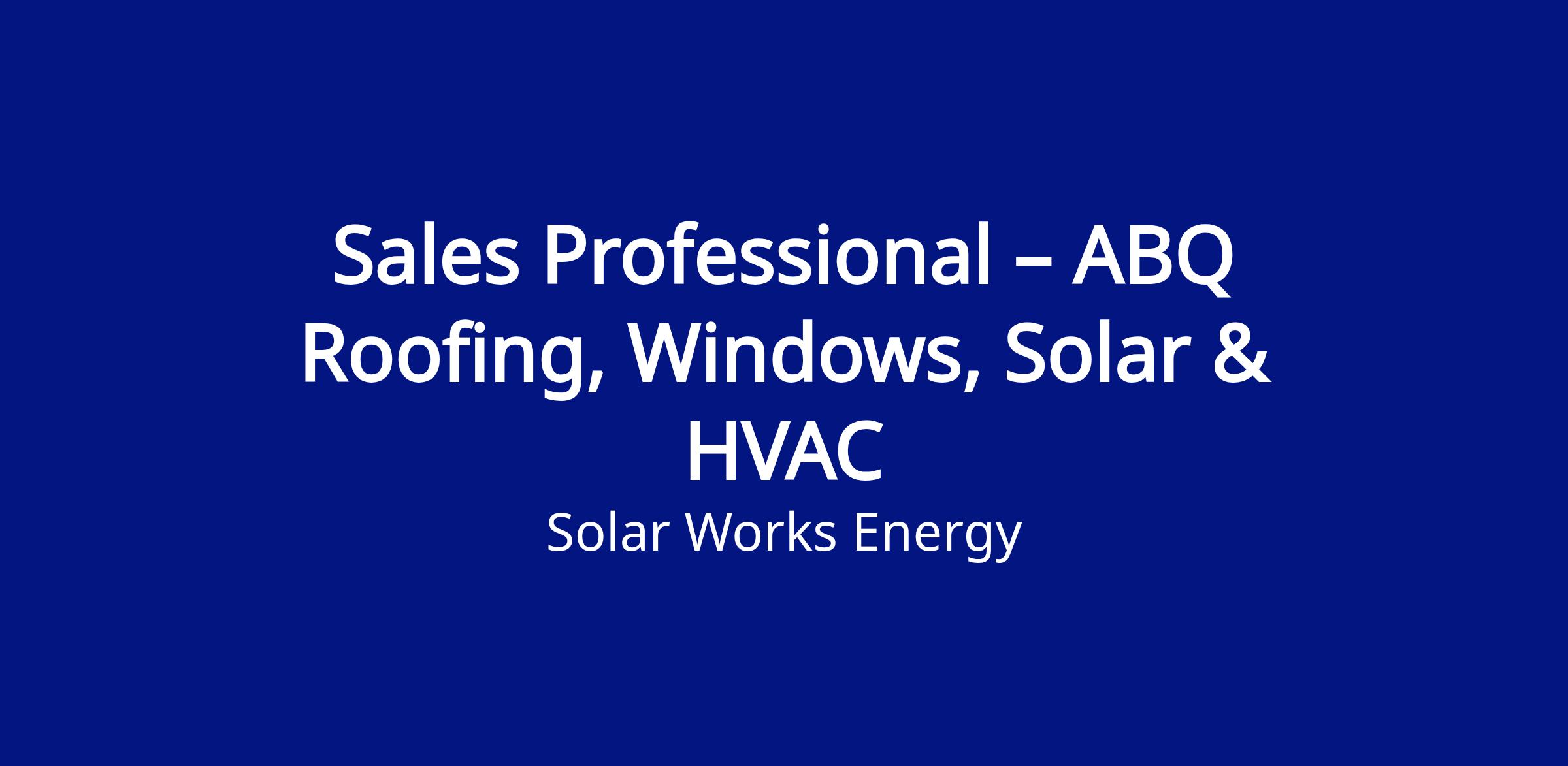 Sales Professional – Roofing, Windows, Solar & HVAC<\/b> <\/div>