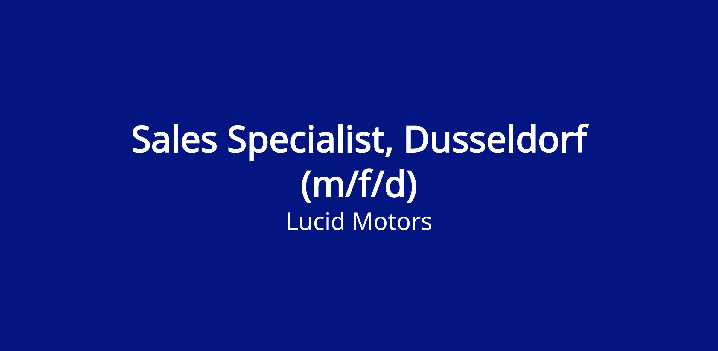 Lucid Motors is seeking an ambitious Sales Specialist who is driven to achieve outstanding results and help customers realize their dream of driving a high-end electric vehicle. As a Sales Specialist in our Dusseldorf studio, you will be responsible for guiding customers through the purchasing process with in-depth product knowledge and personalized sales strategies.