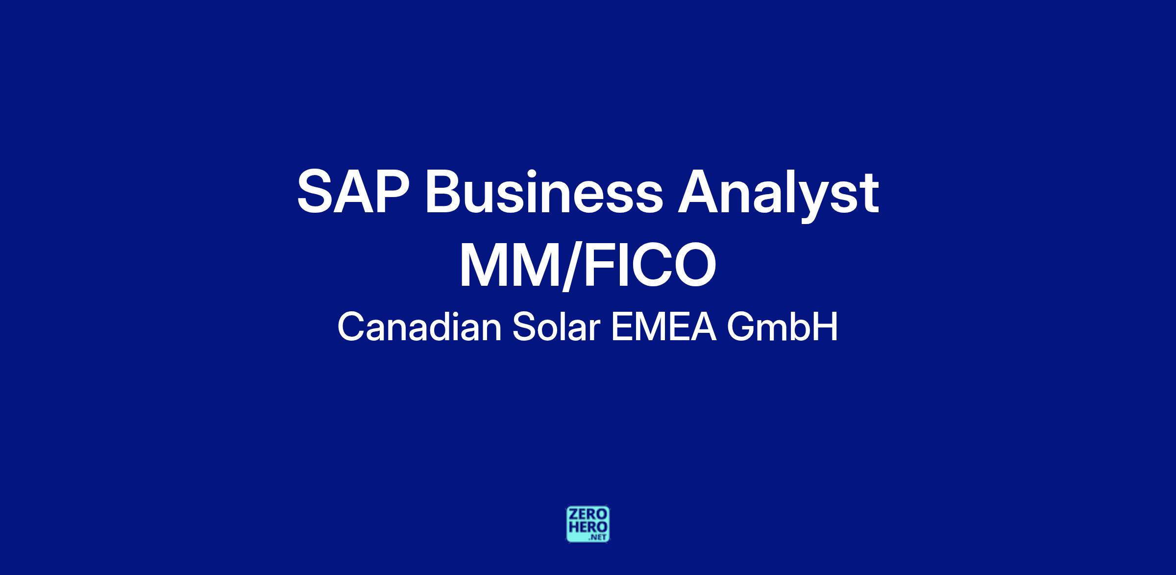 Canadian Solar EMEA GmbH is seeking an SAP Business Analyst (MM/FICO) to join our EMEA IT Applications team. In this position, you will provide a blend of analytical support to the Logistics, Planning, Procurement, and Finance departments throughout the EMEA region by evaluating business requirements and overseeing enhancements within SAP MM and FICO, as well as integration with SD and CRM systems.