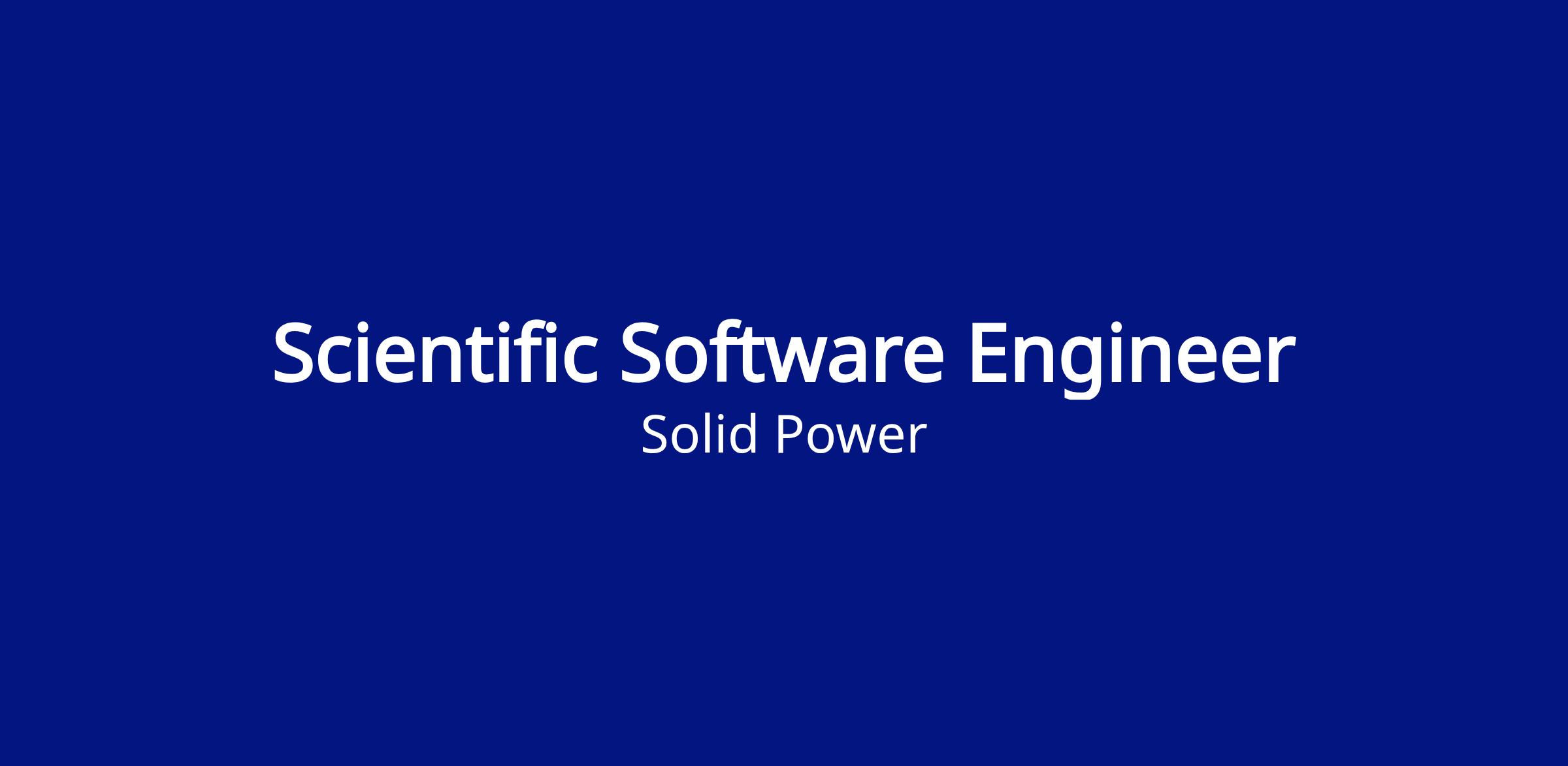 Solid Power is seeking a Scientific Software Engineer to join our talented team of scientists working to revolutionize the battery industry through the development of next‐generation, all solid‐state rechargeable batteries. Solid Power is a dynamic, fast‐paced, collaborative, and innovative team environment. This role is purpose-built to ensure the long-term health, resilience, and self-sufficiency of mission-critical, internally-developed software platforms, including: an end-to-end data lineage tool (tracking cell precursor information through electrochemical cycling) and a materials informatics platform (featuring ML-based prediction of cell performance, automated EIS fitting, and Bayesian optimization workflows).