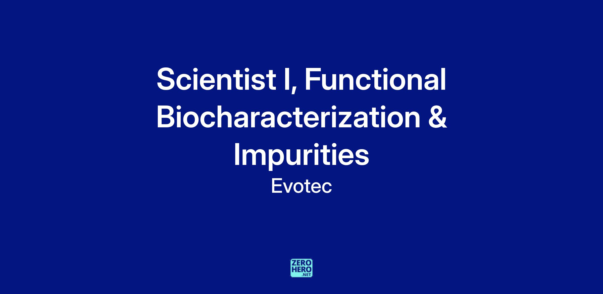 Job Title: Scientist I, Functional Biocharacterization & Impurities