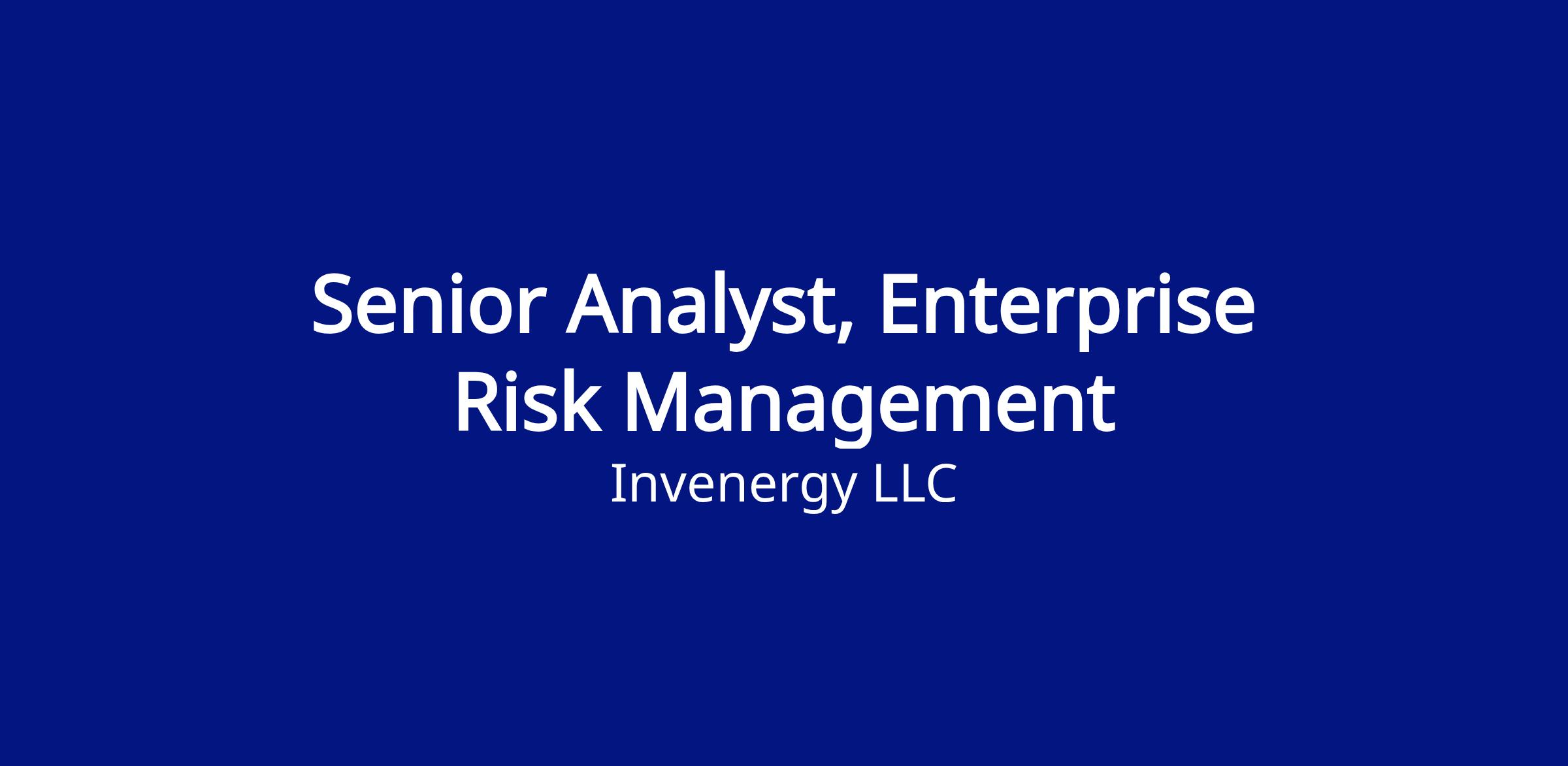 Reporting to the Manager, Enterprise Risk Management, the Senior Analyst, Enterprise Risk Management will support implementation of the Enterprise Risk Management (ERM) and Crisis Management and Recovery frameworks for Invenergy’s renewable and thermal generation portfolio of over 15,000 MWs of projects in operation or under construction and more than 4,000 MWs in advanced development. In partnership and collaboration with Business Units and other departments, this position involves risk and resilience assessment, aggregation, prioritization, monitoring, reporting, and mitigation at the corporate and project level to support Invenergy’s goals and objectives.