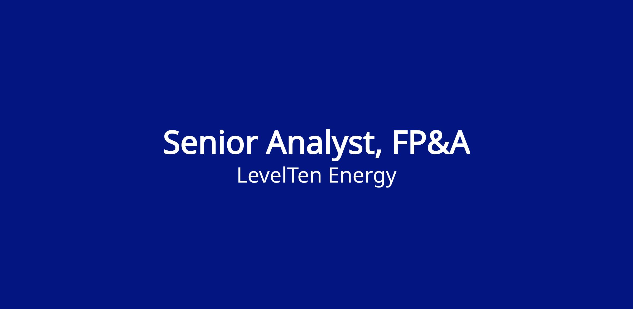 As the FP&A Senior Analyst, you will report to the Director of FP&A and be a member of the larger Finance, Accounting, and HR team at LevelTen Energy. You will be a key partner in developing and driving the company's financial strategy by translating complex data into actionable insights that empower leadership to make informed decisions. This is an opportunity to join a high-growth climate tech leader where your financial expertise directly contributes to a carbon-free future.