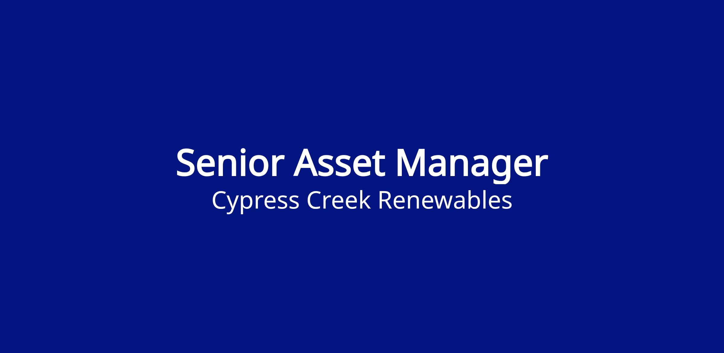 Cypress Creek Renewables is seeking a Senior Asset Manager who will be responsible for leading and managing designated portfolios of solar/storage assets within CCR’s Fleet division. This role plays a pivotal part in ensuring the long-term value and day-to-day performance of designated operating assets, and is at the intersection of operational, regulatory, financial, commercial, risk management, legal and investor matters in CCR’s Fleet. The ideal candidate will come with a passion for clean energy; have growth, value creation and proactive learning mindset; have a finance or engineering background as well as a familiarity with solar/storage. Prior asset management experience in solar or other energy field preferred.