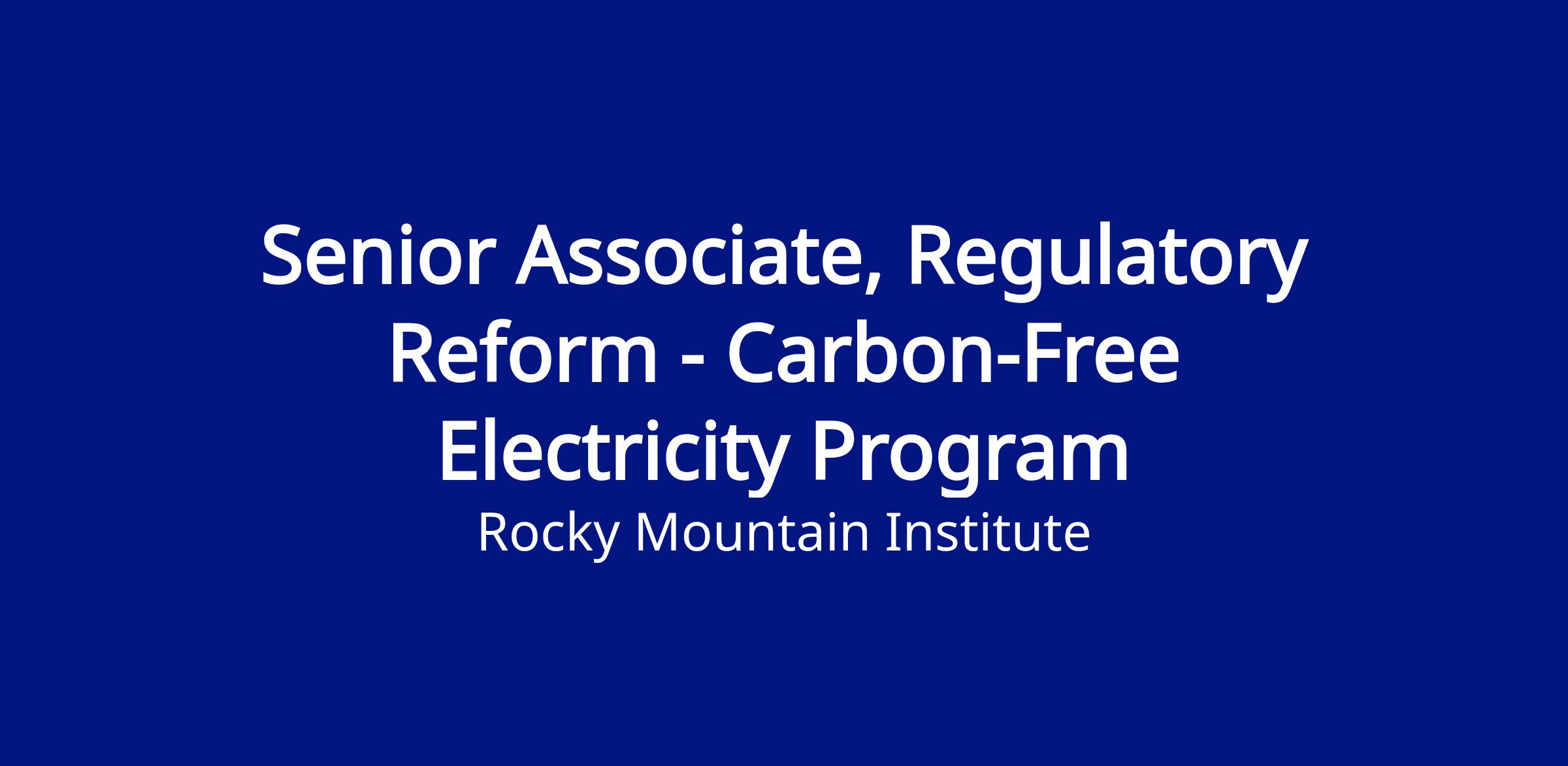CFE seeks a Senior Associate to contribute to RMI’s work on a wide range of potential utility regulatory topics, including ratemaking, utility finance & accounting, cost recovery approaches, alternative regulation (including performance-based regulation), customer affordability programs, utility business models, distributed energy resources, and distribution planning. .
