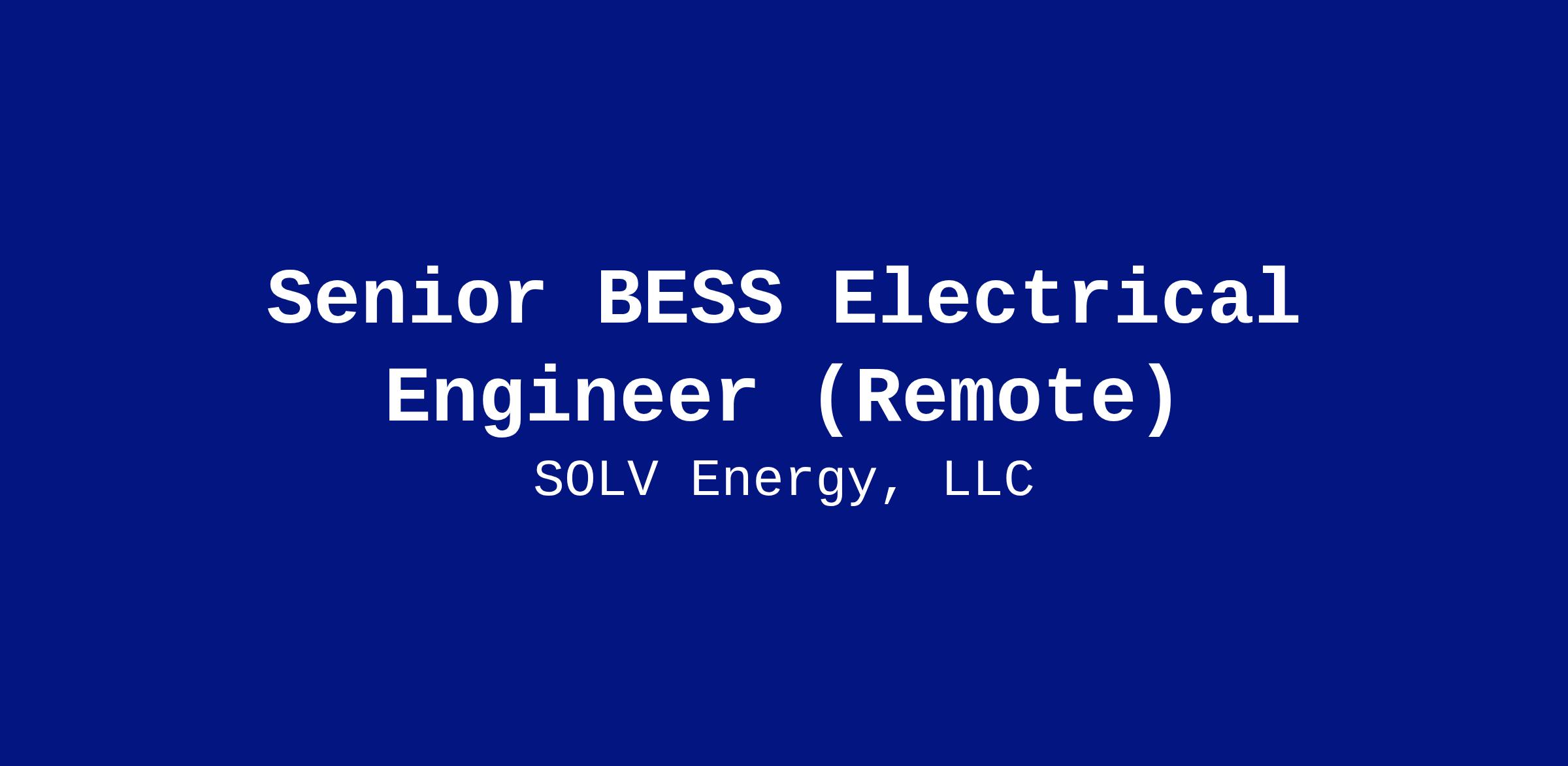 The Senior Electrical Engineer for Battery Energy Storage Systems (BESS) is a key technical leader responsible for the design, development, implementation, and optimization of BESS projects. This role involves providing strategic direction, technical expertise, and engineering oversight to ensure the successful delivery of BESS solutions that meet performance, reliability, and safety requirements.Job Description: