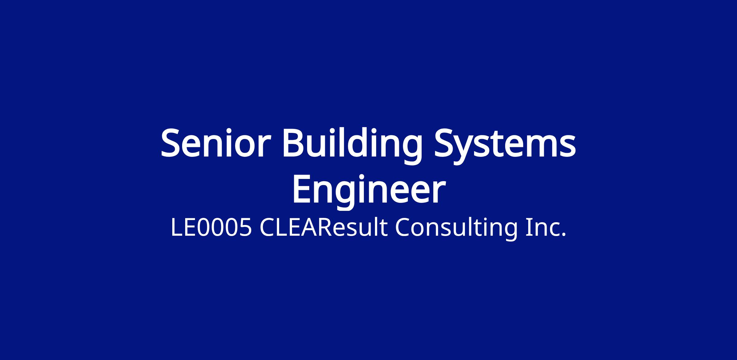 To join our team as a Senior Building Systems Engineer! This role will support