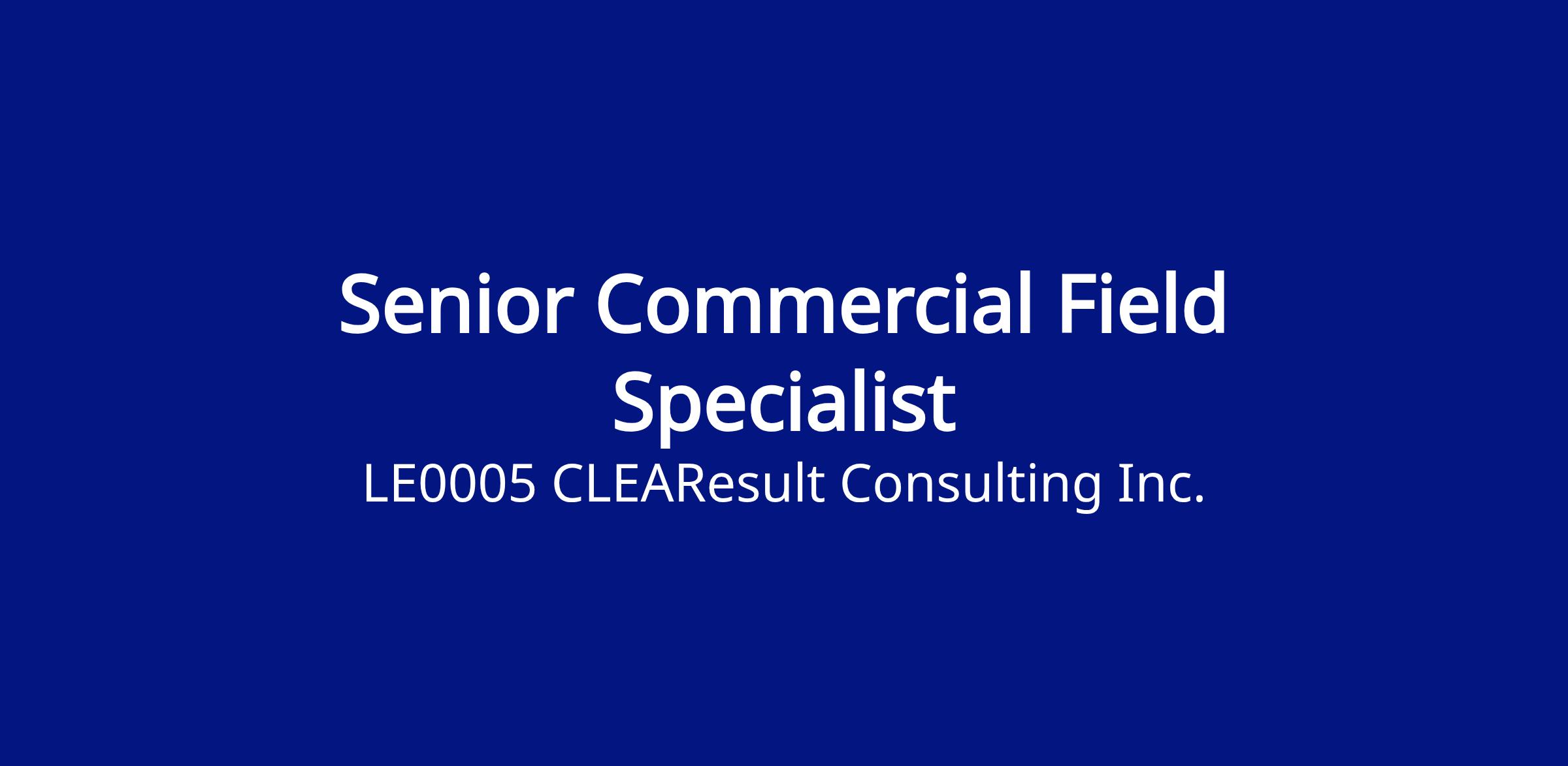 We are looking for a talented individual to join CLEAResult as a Senior Commercial Field Specialist. As a Senior Commercial Field Specialist, you will play a key role in delivering high‑quality field services, supporting commercial energy‑efficiency projects, and serving as an on‑site representative to customers and contractors.