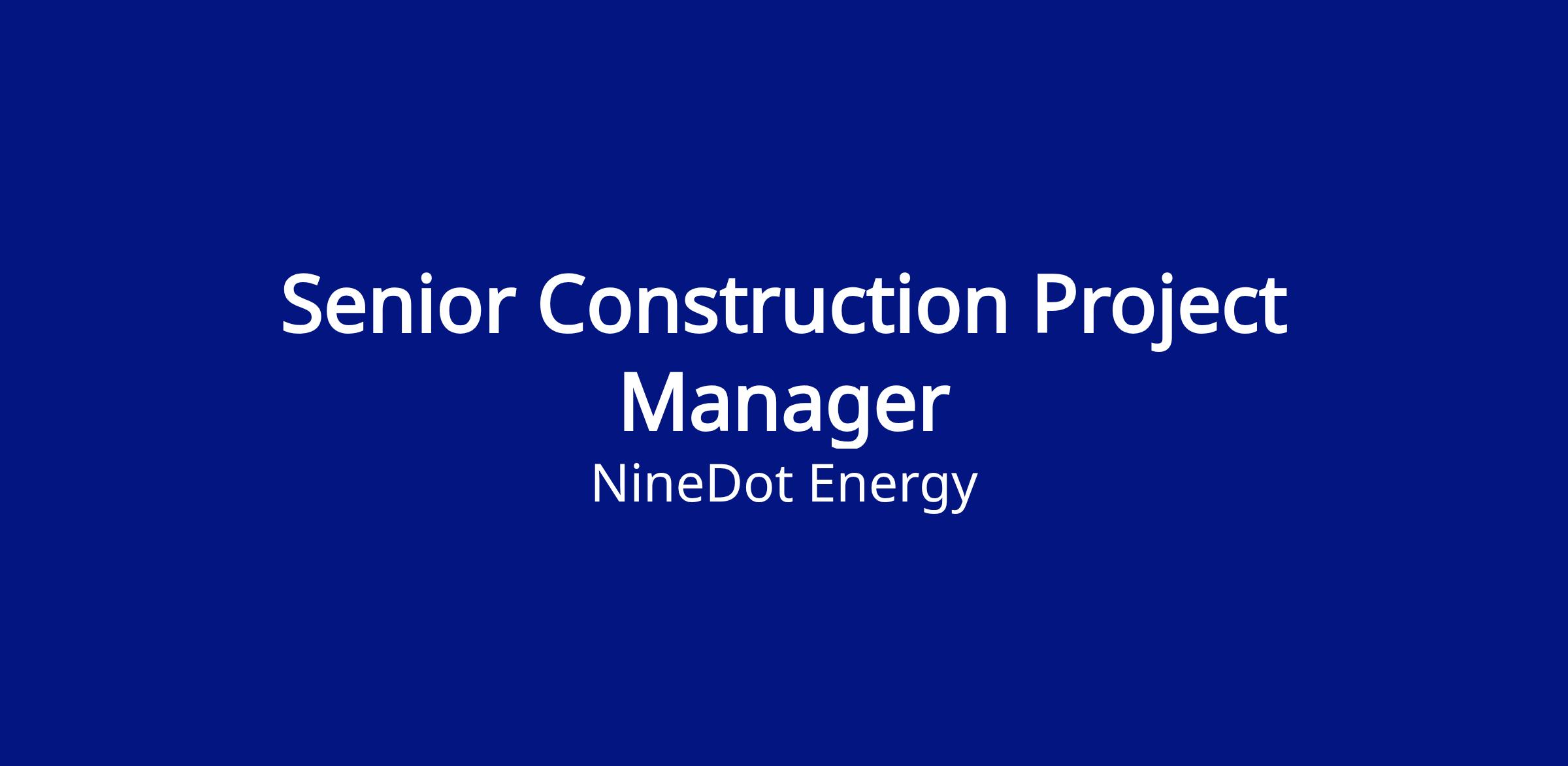 The Senior Construction Project Manager (CPM) leads the field execution of NineDot Energy’s Battery Energy Storage System (BESS) and other Distributed Energy Resource (DER) projects from the 30% design milestone through construction, commissioning, and turnover. In this role, the CPM owns construction delivery—managing contractors, overseeing field operations, and coordinating with internal teams to ensure projects are completed safely, on schedule, within budget, and in compliance with all regulatory standards. Reporting to the Director of Construction, the CPM plays a key role within the Engineering, Planning & Construction (EP&C) team and is ideal for a hands-on project manager who excels at balancing day-to-day field leadership with project tracking and stakeholder coordination.