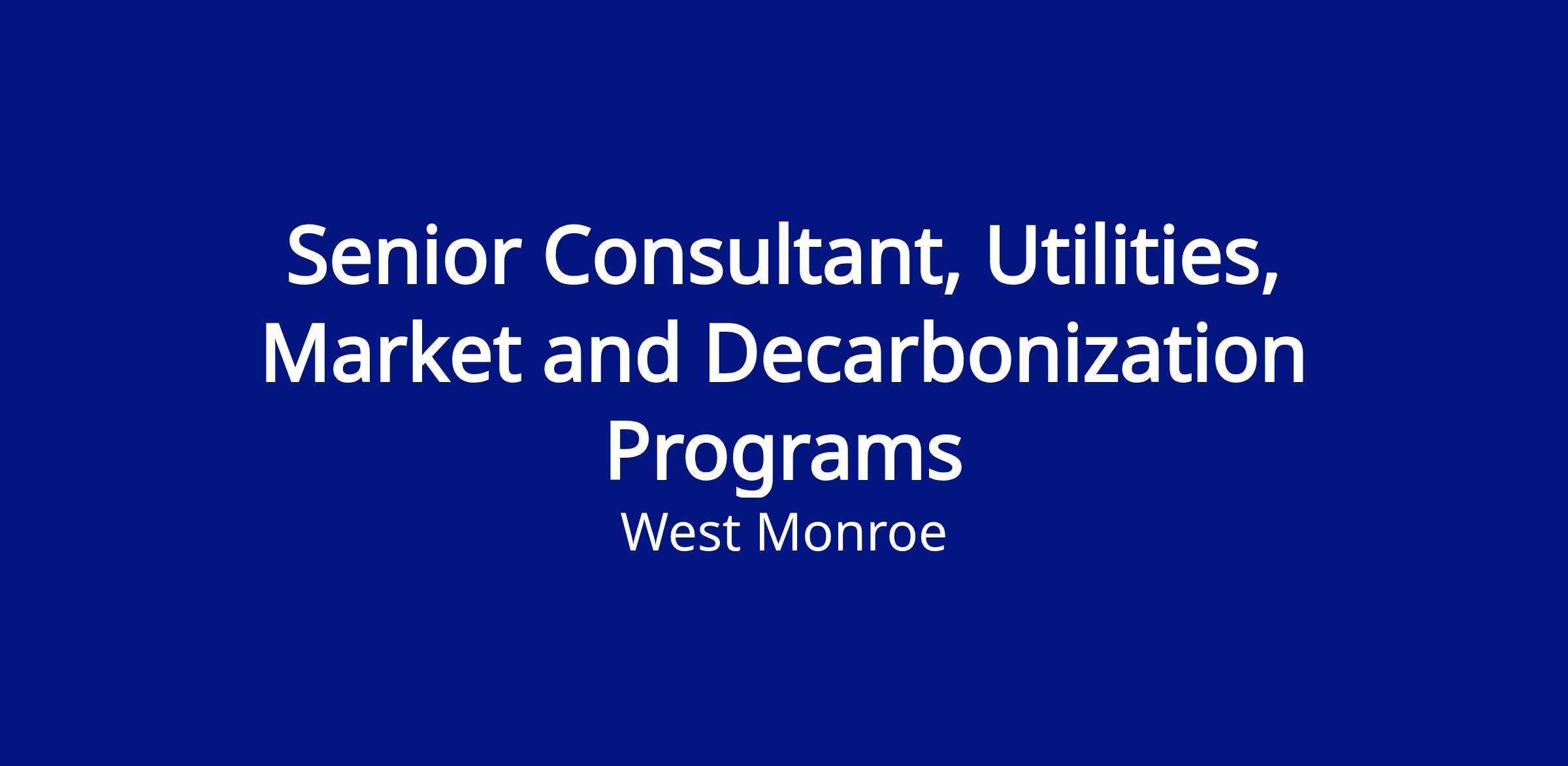 West Monroe is seeking a mission-driven Senior Consultant to join the Energy & Utilities team. In this role, you will directly contribute to the execution and management of decarbonization consulting projects that use building energy modeling, advanced analytics, and research that support energy efficiency, electrification, decarbonization, and the integration of renewables into the electric grid.