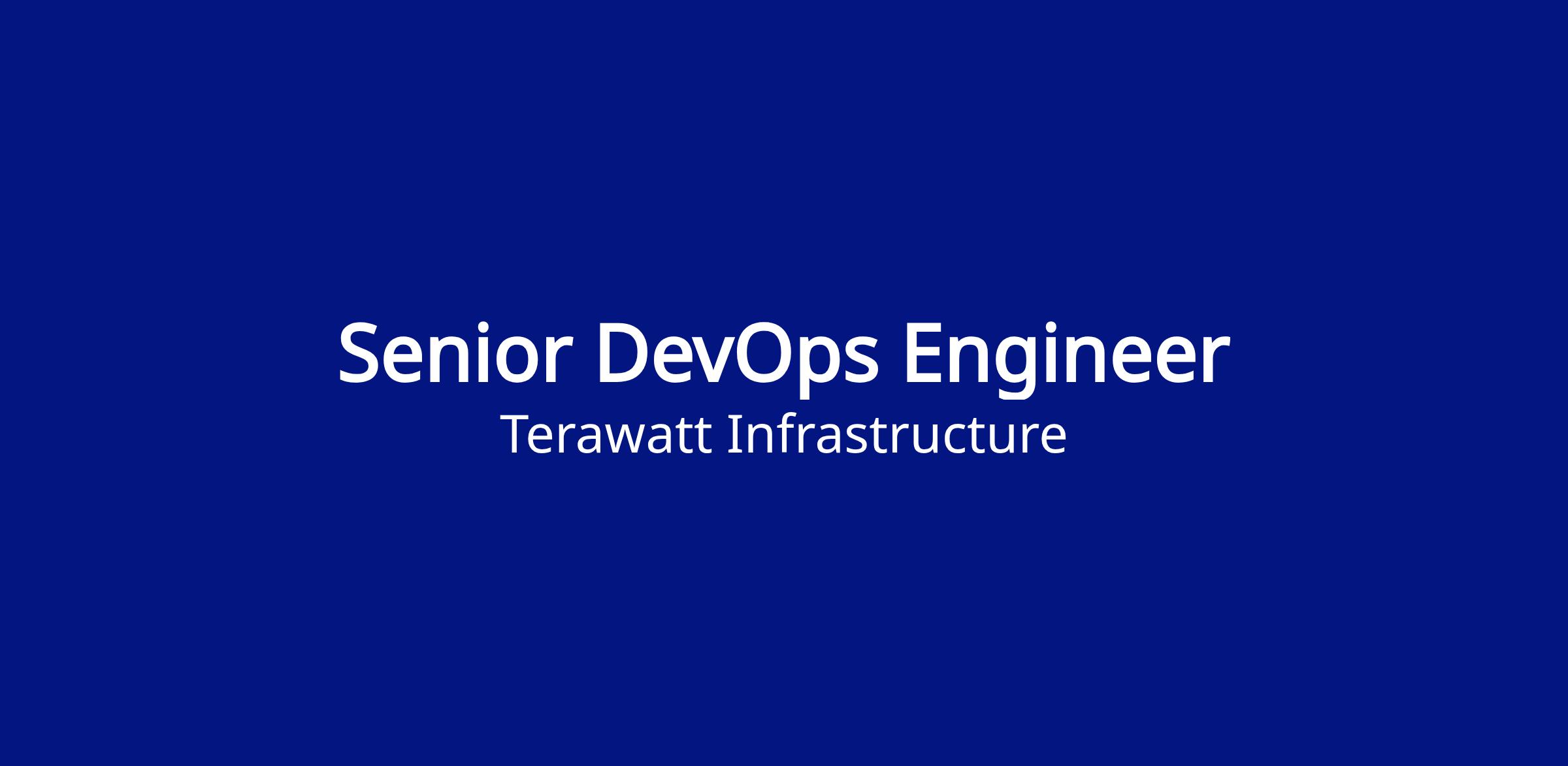 If you are a DevOps or Cloud Infrastructure Software Engineer who is motivated to help build scalable, impactful technology with a collaborative and innovative team, we encourage you to apply. Your work at TeraWatt will contribute directly to advancing the sustainable transportation infrastructure of the future.