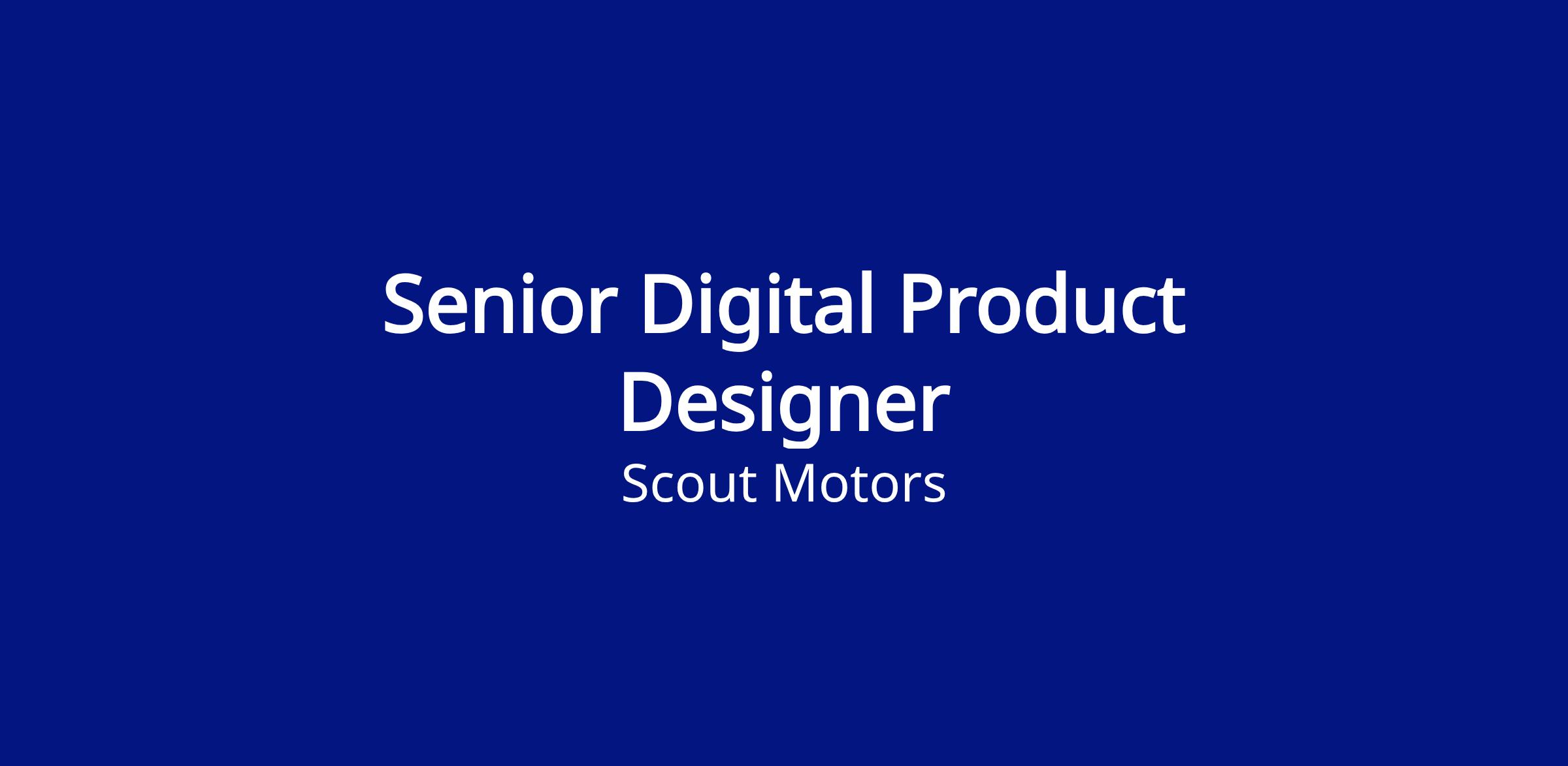 Scout Motors is committed to employing a diverse workforce and is proud to be an Equal Opportunity Employer. Qualified applicants will receive consideration without regard to race, color, religion, sex, national origin, age, sexual orientation, gender identity, gender expression, veteran status, disability, pregnancy, or any other characteristics protected by law. Scout Motors is committed to compliance with all applicable fair employment practice laws. If you require reasonable accommodation to complete a job application, pre-employment testing, or a job interview or to otherwise participate in the hiring process, please contact ScoutAccommodations@scoutmotors.com.